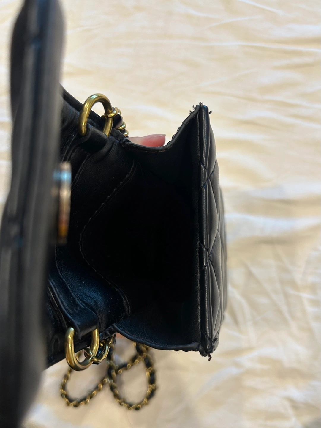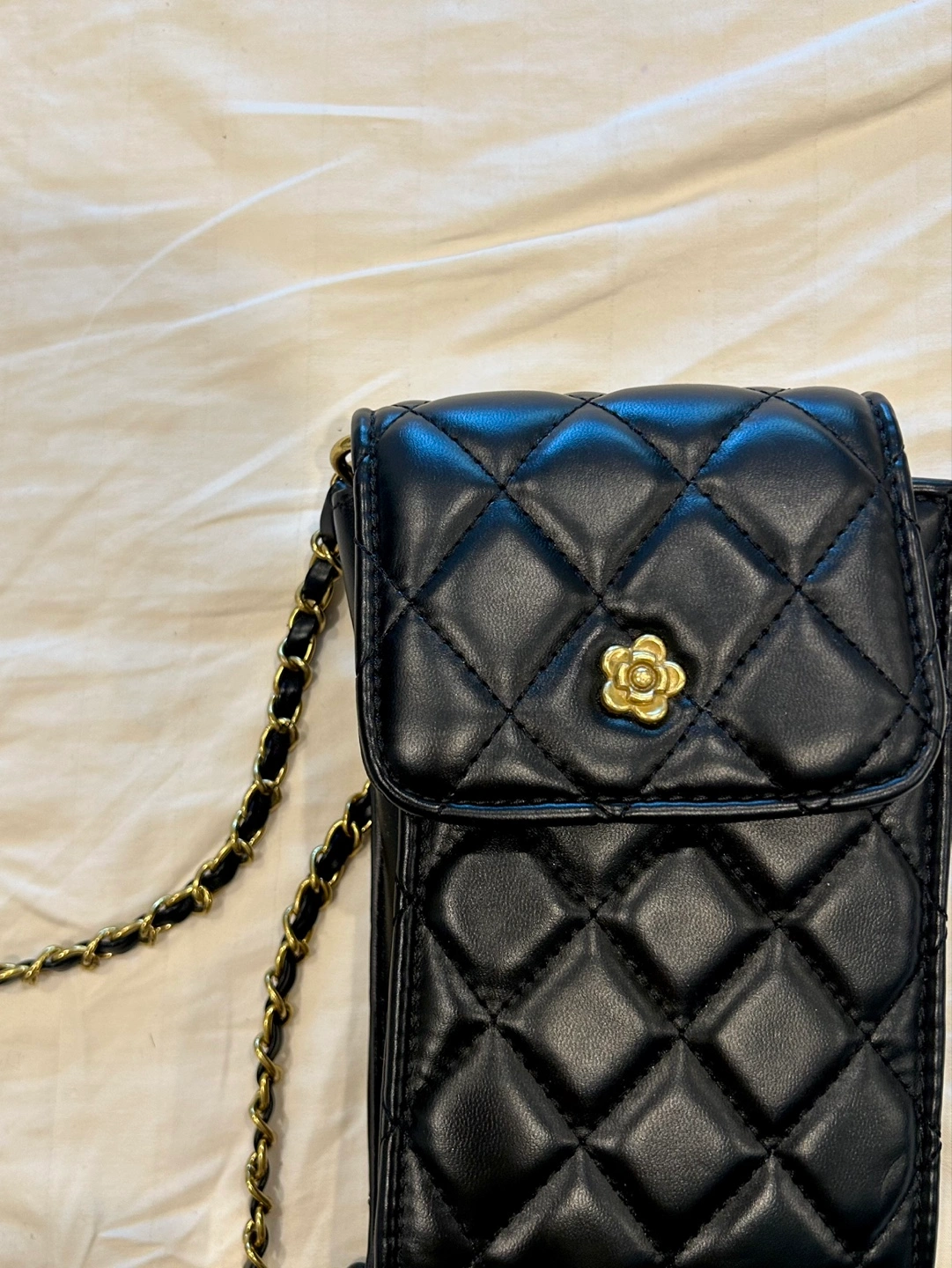 Small black crossbody bag, perfect for carrying essentials like your phone or a few lipsticks!! Feel free to message me if you have any questions!