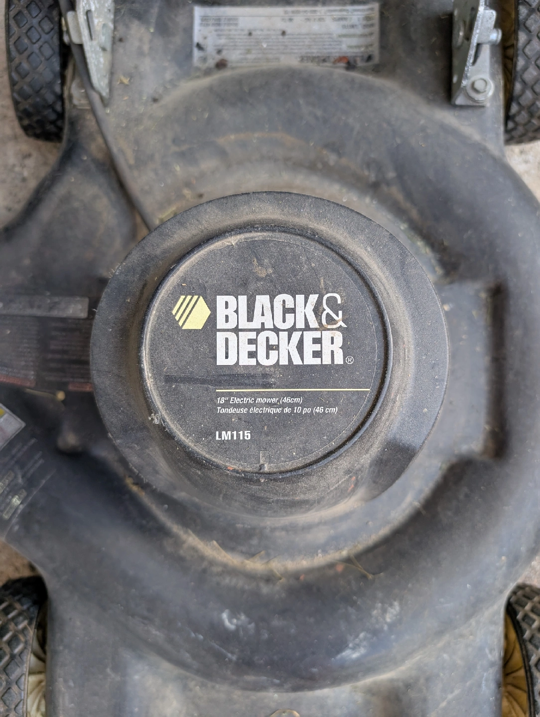 Selling a Black & Decker 18" electric lawn mower (46cm). The model number is LM115. Older, but blades were sharpened last year, and still works well!