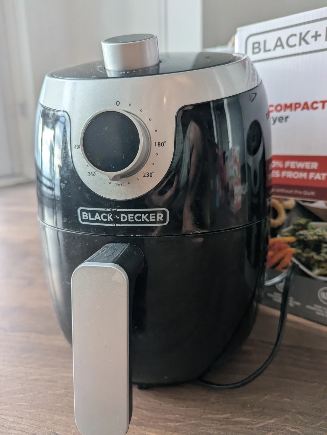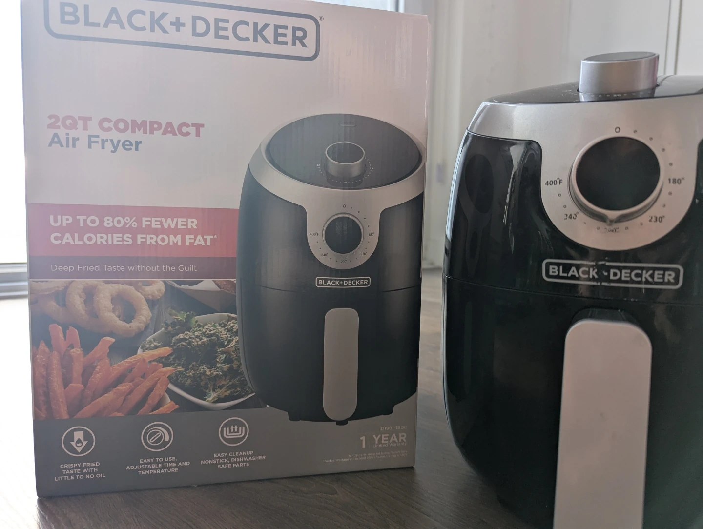 60Selling a Black+Decker 2QT compact air fryer! It's in great shape and ready to help you make crispy fried foods with little to no oil. The air fryer is designed for easy use with adjustable time and temperature settings, and cleanup is a breeze with the nonstick dishwasher-safe parts. Enjoy deep-fried taste without the guilt! Key Features Versatile Cooking: This appliance is a countertop multi-tasker that can be used for air frying, roasting, baking, dehydrating, and reheating food. Air Crisp Technology: The exclusive cooking element and a powerful dual-fan convection system circulate superheated air (up to 400°F or 204°C) to deliver fast, crispy results with up to 80% less fat than traditional deep frying methods. Capacity: The compact 2-quart (2-liter, or about 8-cup) capacity air-frying basket is suitable for preparing snacks or main dishes for one or two people. Some models include a basket separator for cooking multiple items at once. Adjustable Controls: It features variable temperature control ranging from 175°F to 400°F (depending on the specific model, some have a range starting at 0°F) and a 60-minute timer for precision cooking. Safety Features: The unit is equipped with automatic shut-off when the timer is complete and also when the pan is removed during cooking, ensuring peace of mind. It also features a cool-touch handle for safe handling. Easy Cleanup: The non-stick frying basket, pan, and basket separator are removable and dishwasher-safe, making cleanup quick and easy. Additional Functions (on select digital models): Some versions offer a digital touchscreen with 9 one-touch presets for popular foods like French fries, steak, fish, and chicken, as well as a "shake reminder" feature for even cooking.