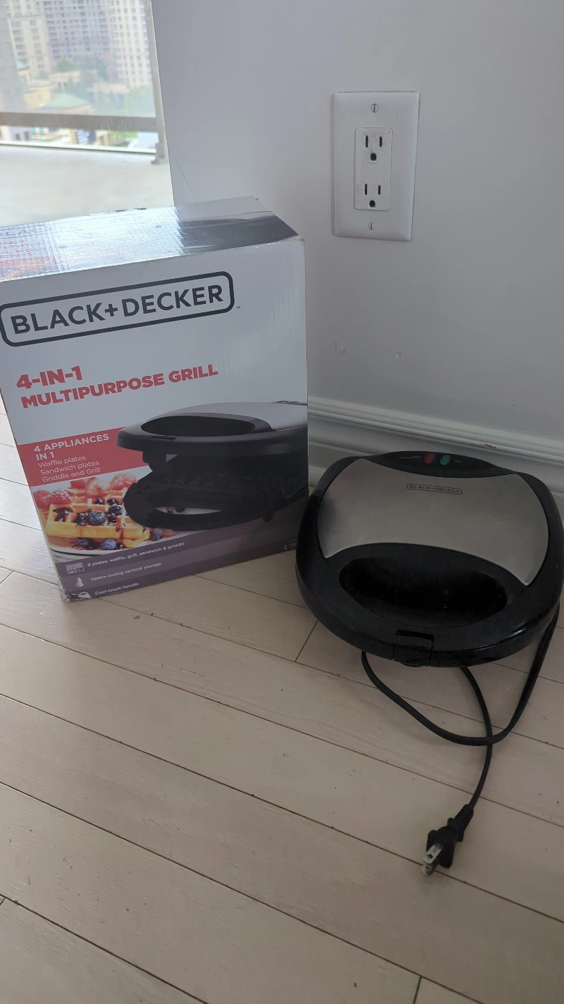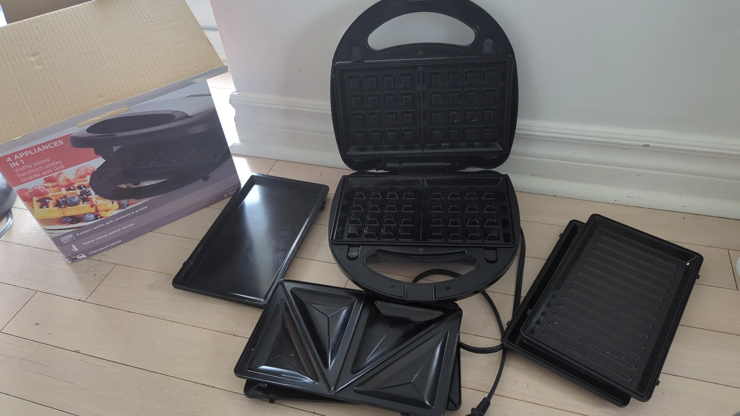 79Versatile kitchen appliance. Waffle, sandwich, and grill plates included. Good condition.