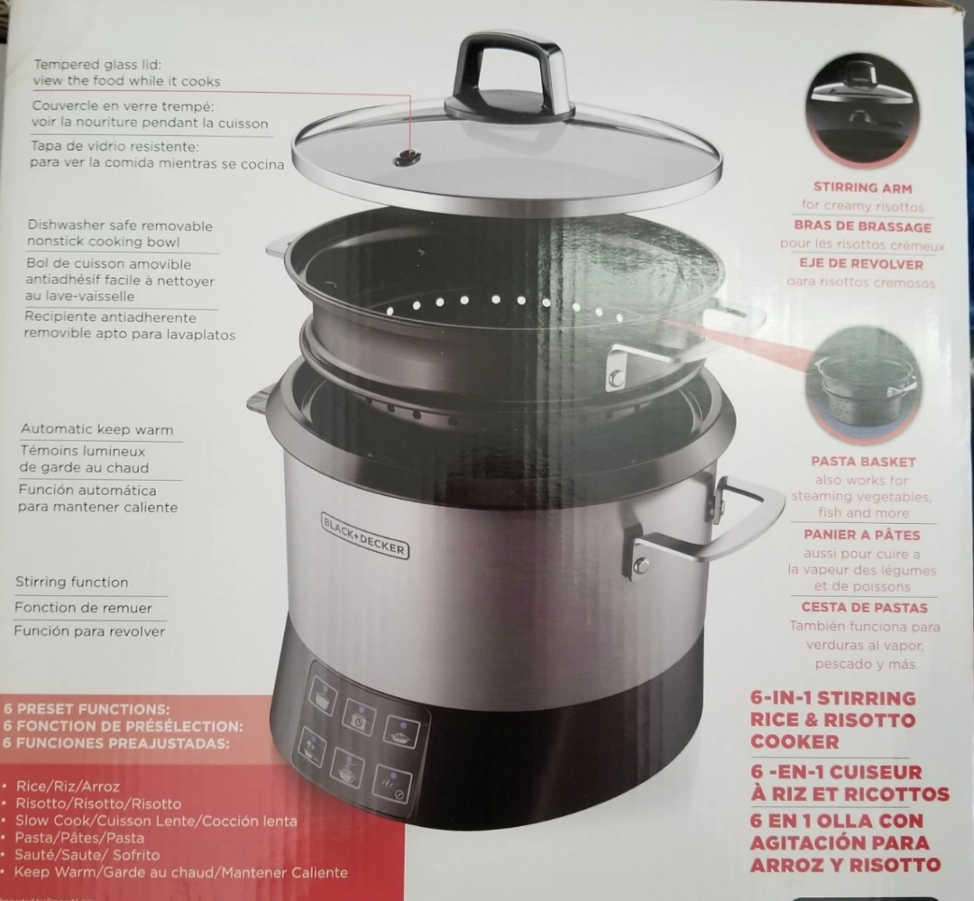 [Kindly review the attached photos before setting up a meet-up.] I'm selling a BLACK+DECKER 6-in-1 Stirring Rice & Risotto Cooker! It has multiple cooking functions in one appliance. You can create creamy, authentic risotto without the hassle, and sauté fresh meats or vegetables. It makes 20 cups of cooked rice for family-sized portions. New, unopened firm price (CASH only) final sale pick up ONLY in front of TCDSB It is available if you see the post with no indication of "reserved." Please do not ask. Msg me when you want it only. 🙏