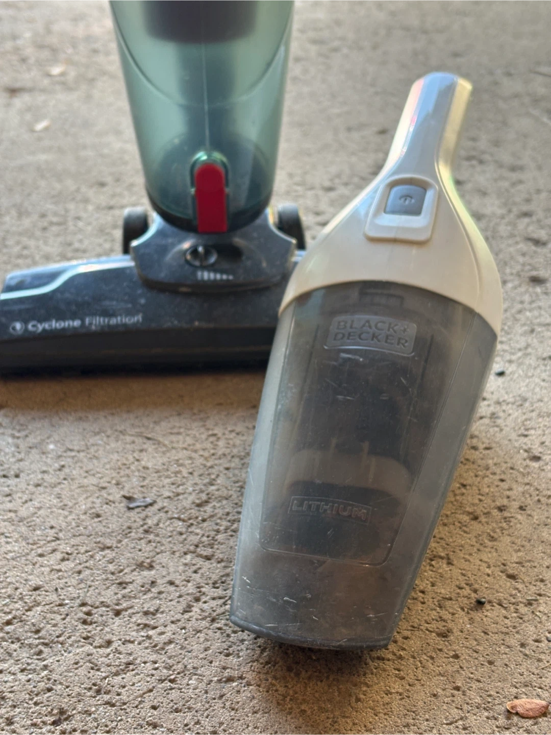 Selling a Black+Decker cordless stick vacuum along with corded dibea vacuum. It's in good working condition and is great for quick cleanups around the house. Features cyclone filtration for effective dirt and dust removal. Lightweight and easy to maneuver, making it perfect for small spaces