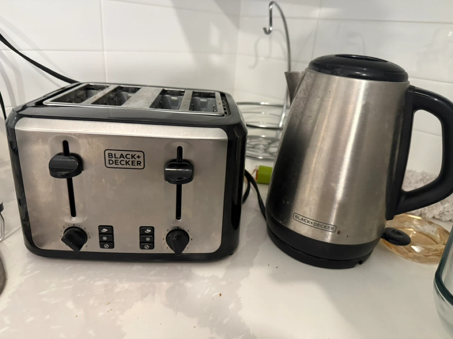 65Selling a Black+Decker toaster and kettle set. Both have been used and show signs of wear, as seen in the photos. They're still functional, though!