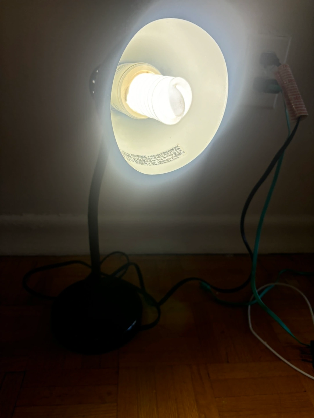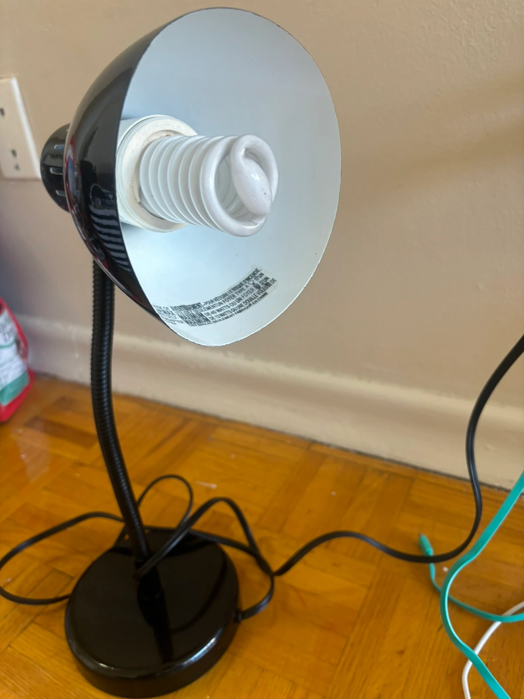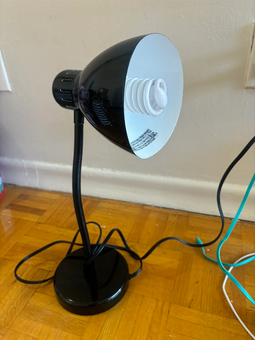 Black desk lamp with a flexible neck. Includes a light bulb. Cash only 3112 jaguar valley drive