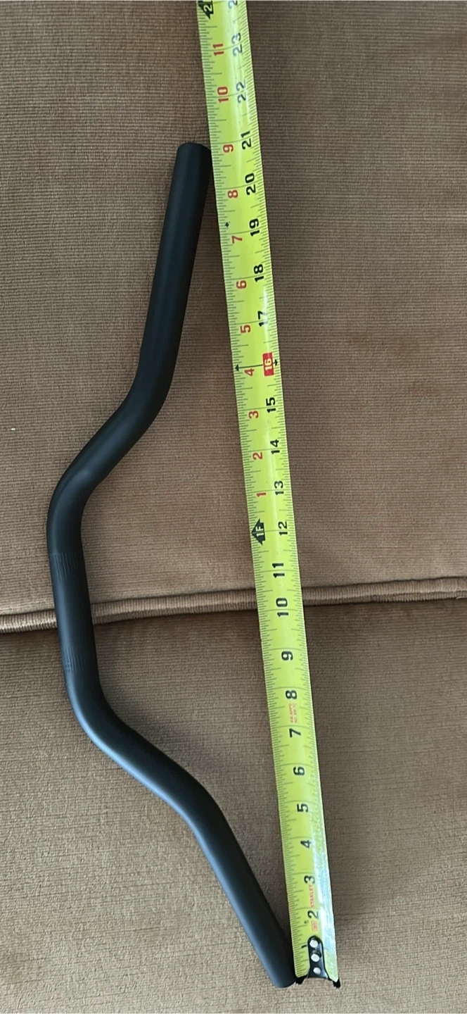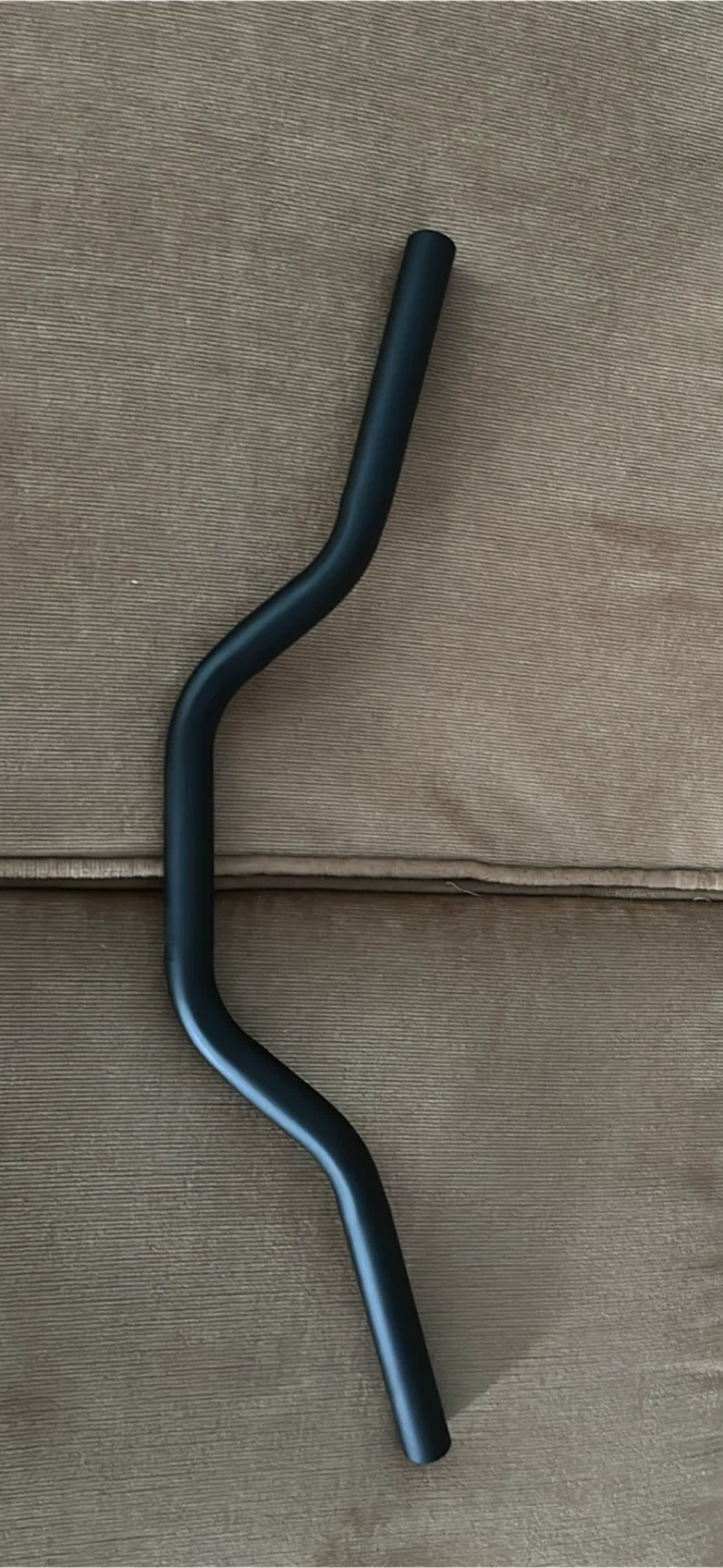 Selling a black bicycle handlebar. It measures approximately 22 inches in length. Perfect for upgrading your bike or replacing a damaged handlebar!