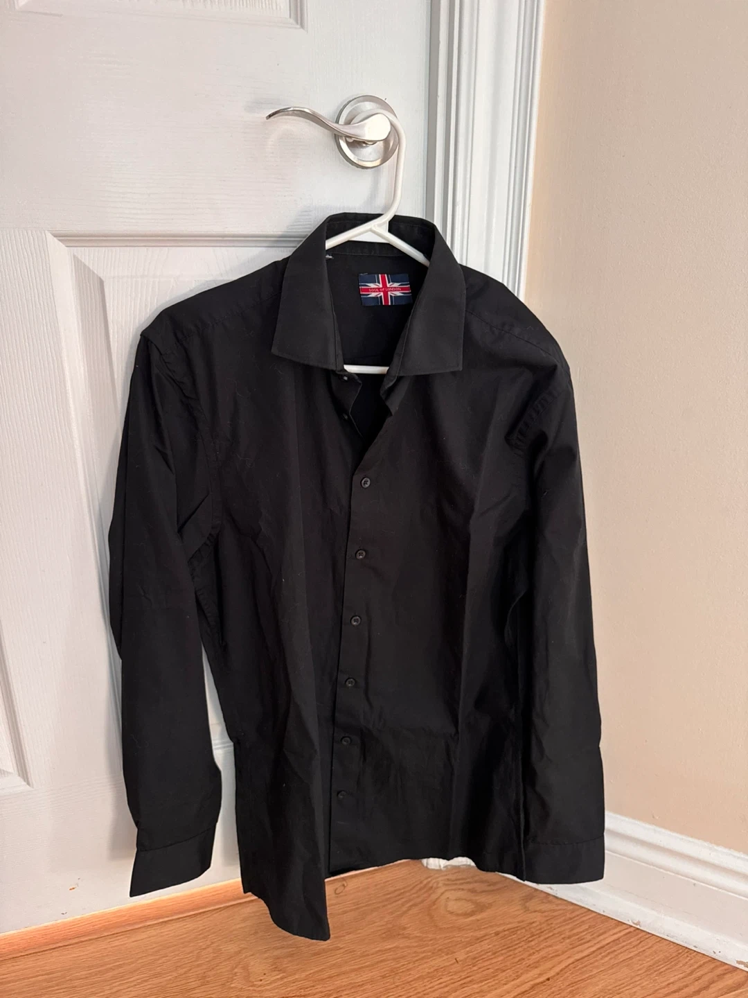 142Selling a black dress shirt. It's in great condition and ready for a new home! It looks like it would be a great addition to your wardrobe