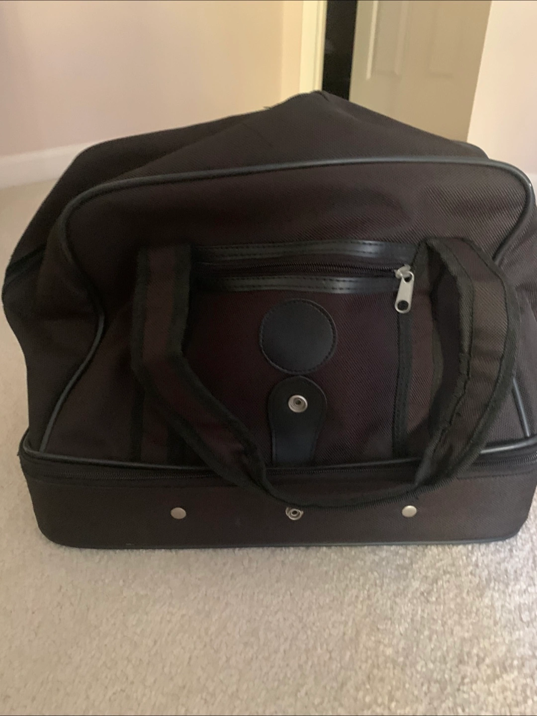 Selling a black duffel bag. It's in good condition and ready for your next trip to the gym or weekend getaway! It features a zippered top and sturdy handles