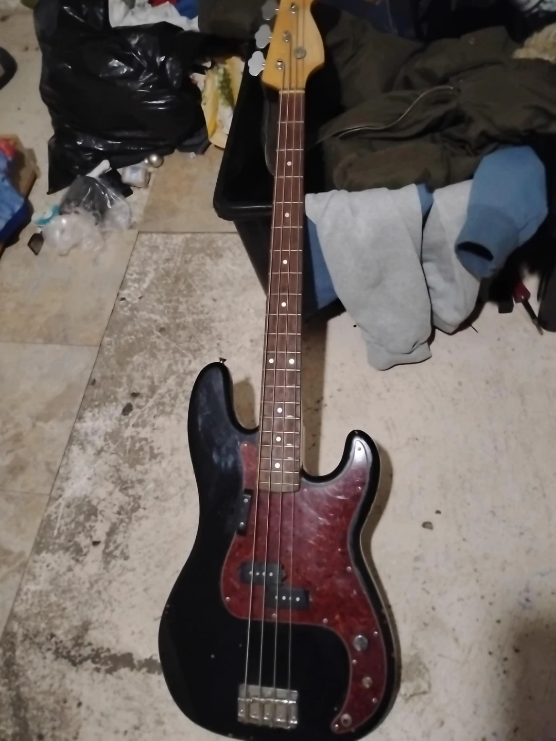 5Selling a black electric bass guitar. It has a red pickguard and a light-colored neck. Perfect for someone looking to start playing bass or for someone who needs a backup instrument