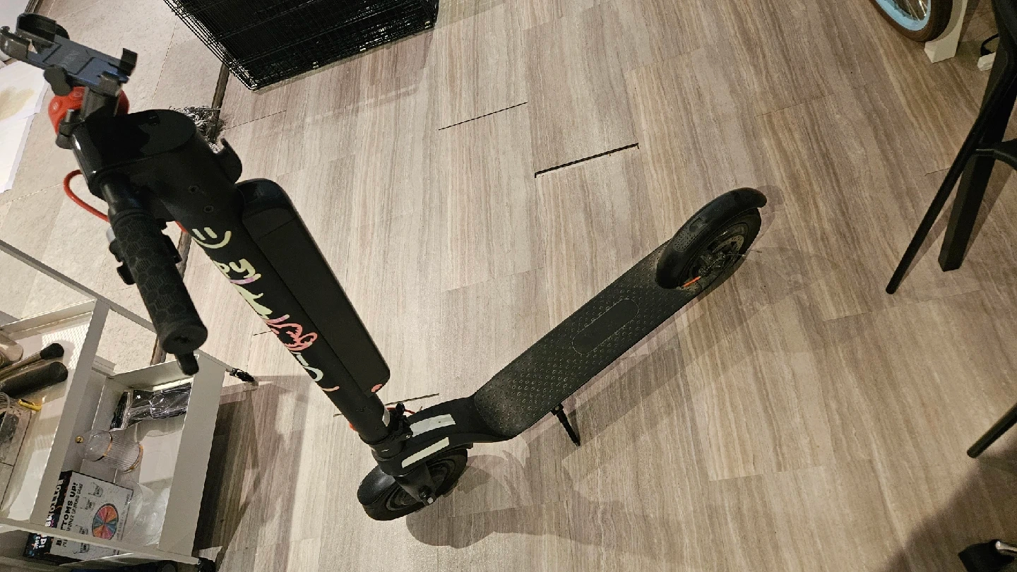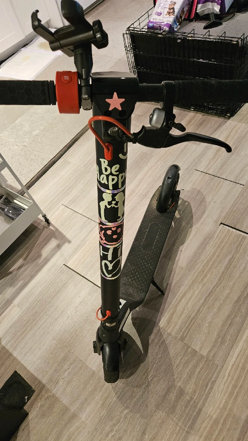 18Selling a used black electric scooter. It has some fun decorations on the stem. Perfect for getting around town! I recently changed the wheels and the breaker.