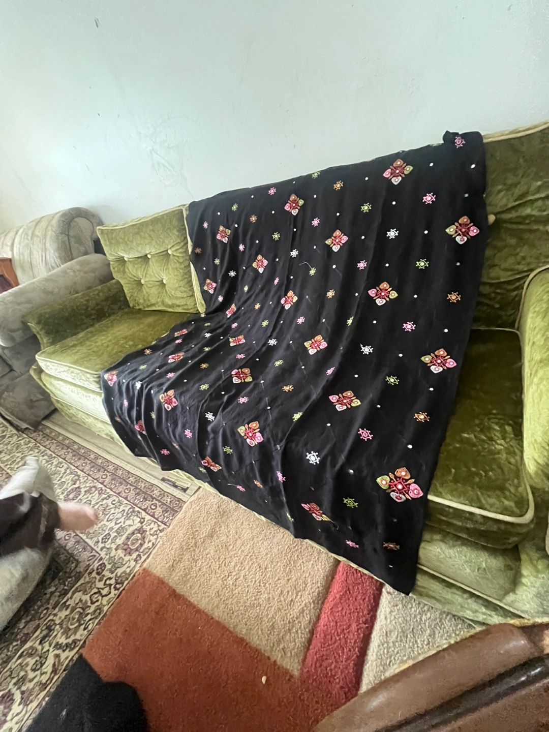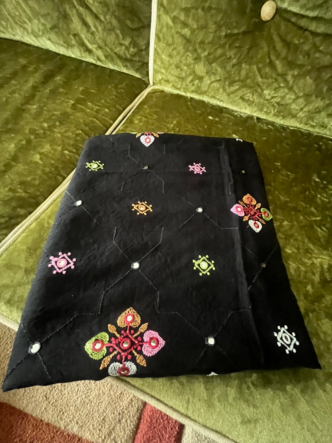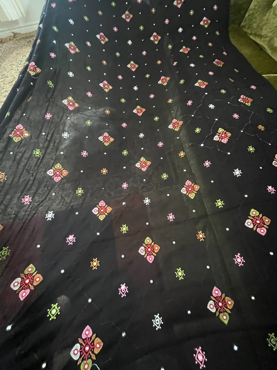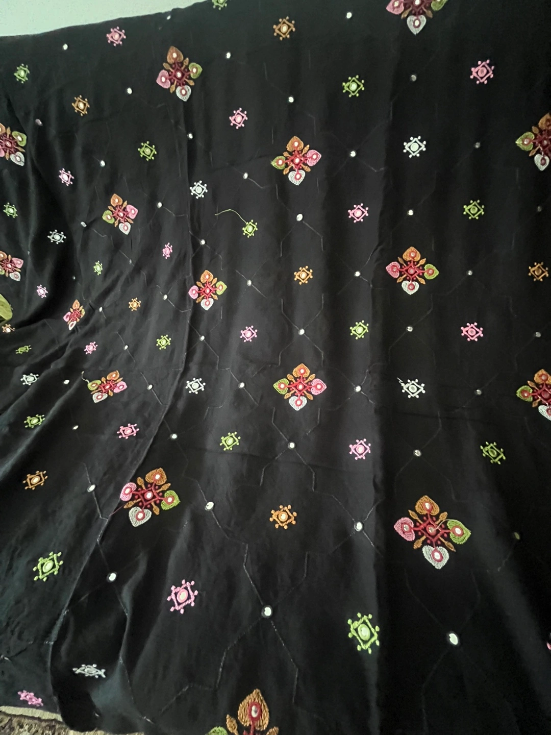 Black embroidered shawl with mirror work