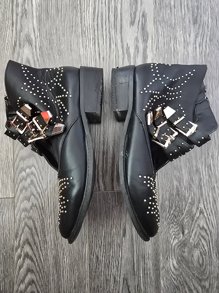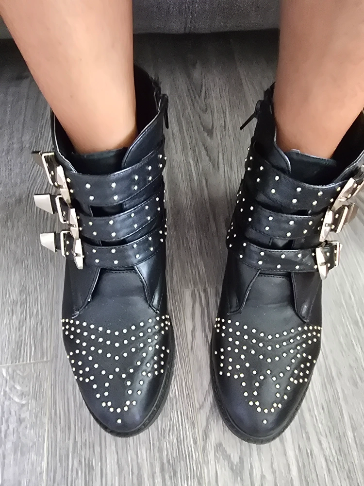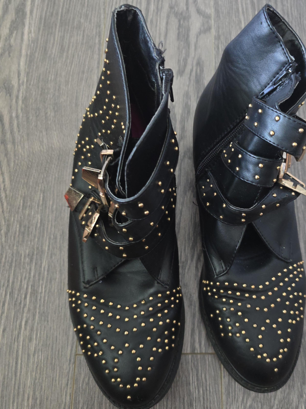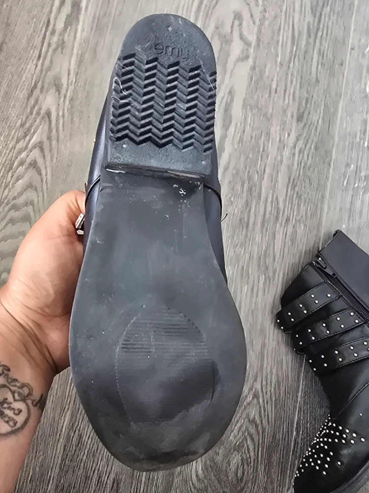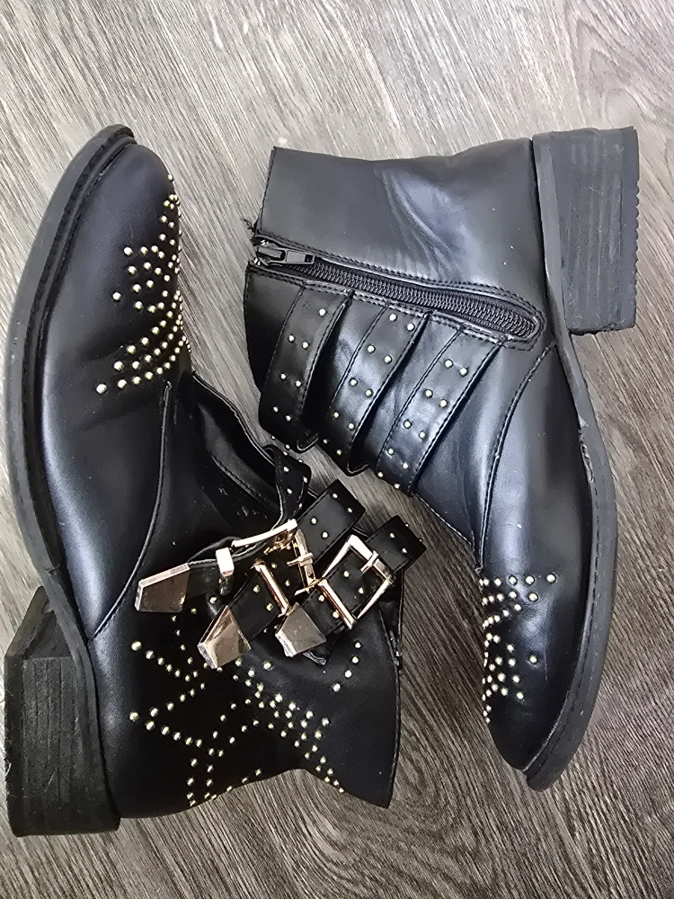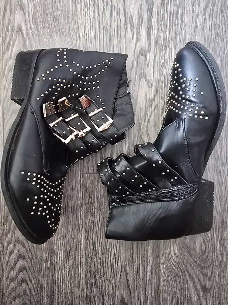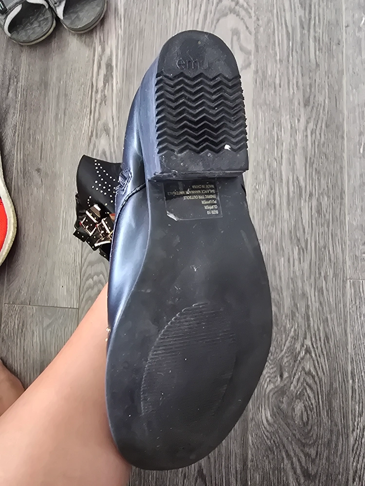 Selling a pair of black EMU ankle boots in size 9. Will fit a wide footed as well. They feature a stylish studded design and buckle accents. These boots are in better than good condition and ready for a new home! they also come with 2 comfy insoles for free.