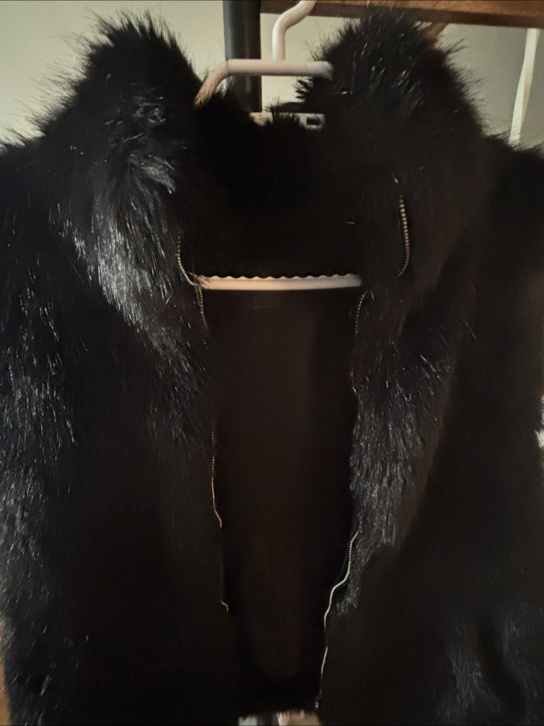 Selling a stylish black faux fur vest! It's in great condition and perfect for adding a touch of warmth and flair to any outfit. The faux fur is soft and cozy, making it a comfortable and fashionable choice for layering. Small but fits like medium
