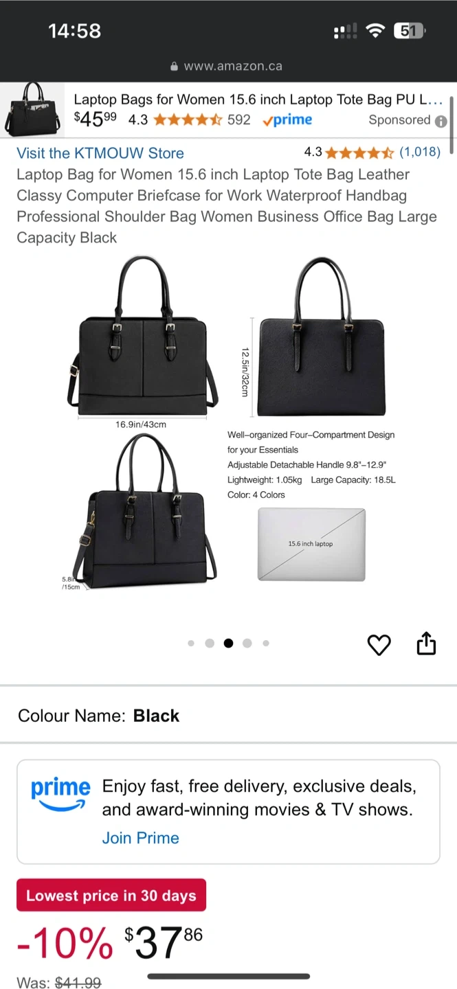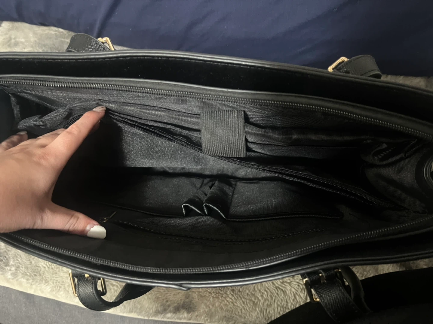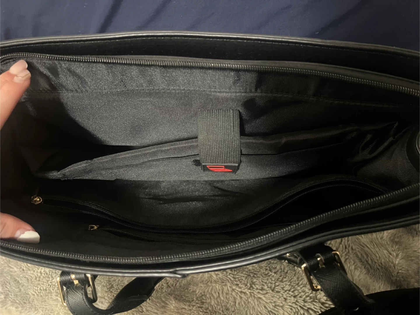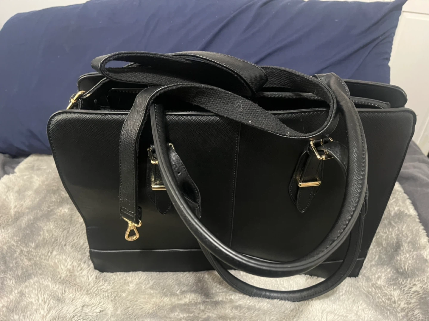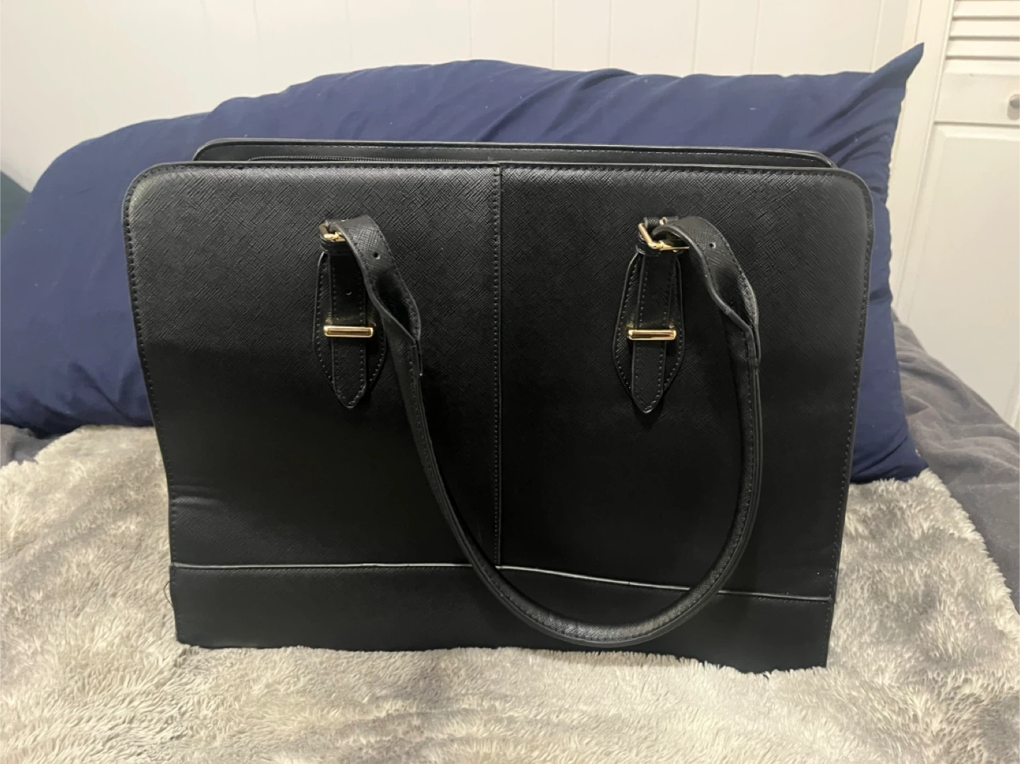 111Looking to sell this black laptop tote bag from KTMOUW. It fits a 15.6 inch laptop. It has a well-organized four-compartment design. The handle is detachable. Lightweight and large capacity. Originally bought for $42