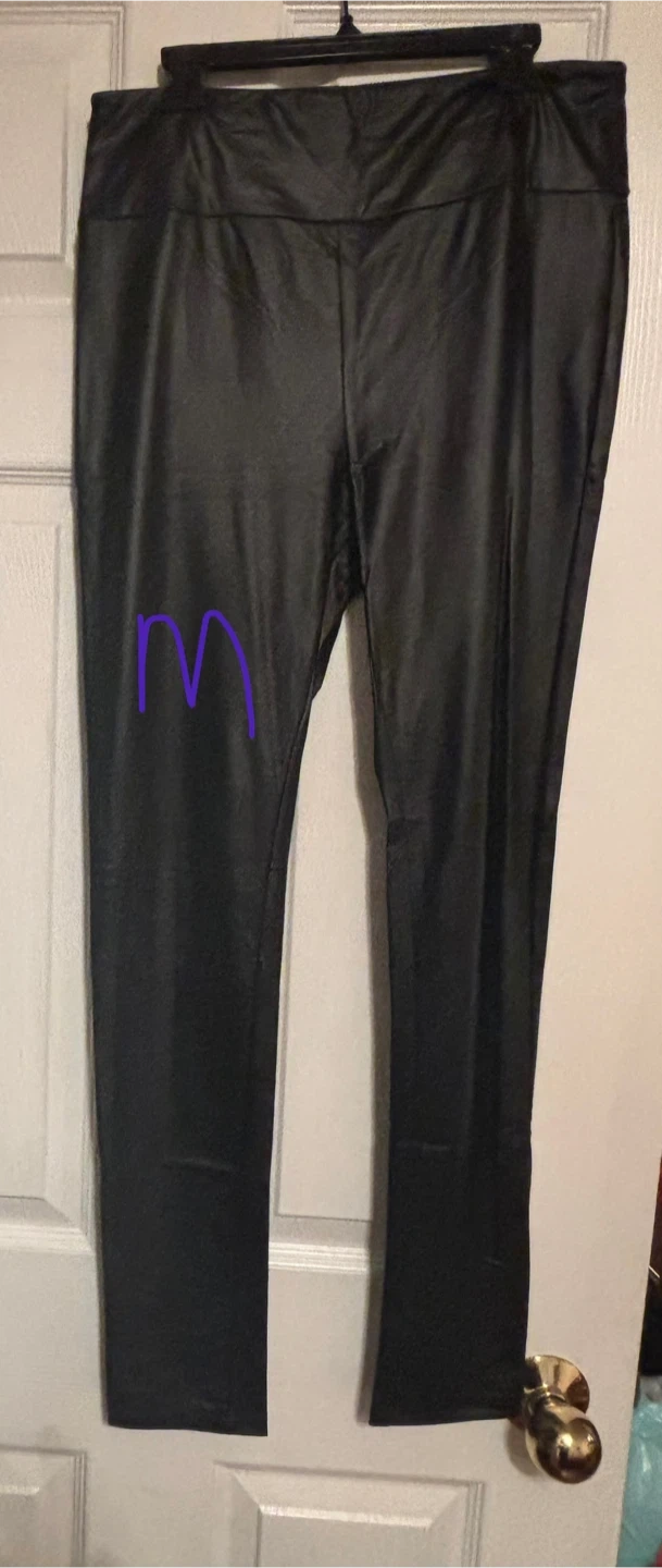 123Selling a pair of black faux leather leggings in size M. They're in great condition and would be a stylish addition to your wardrobe