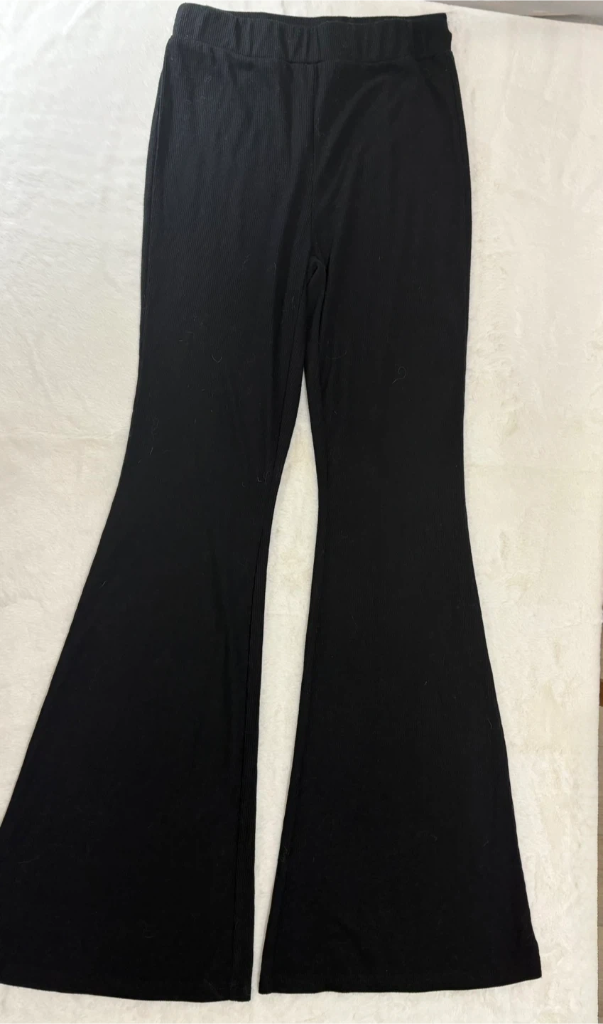70Comfortable long legged flare pants with a small waistband. Very stylish.