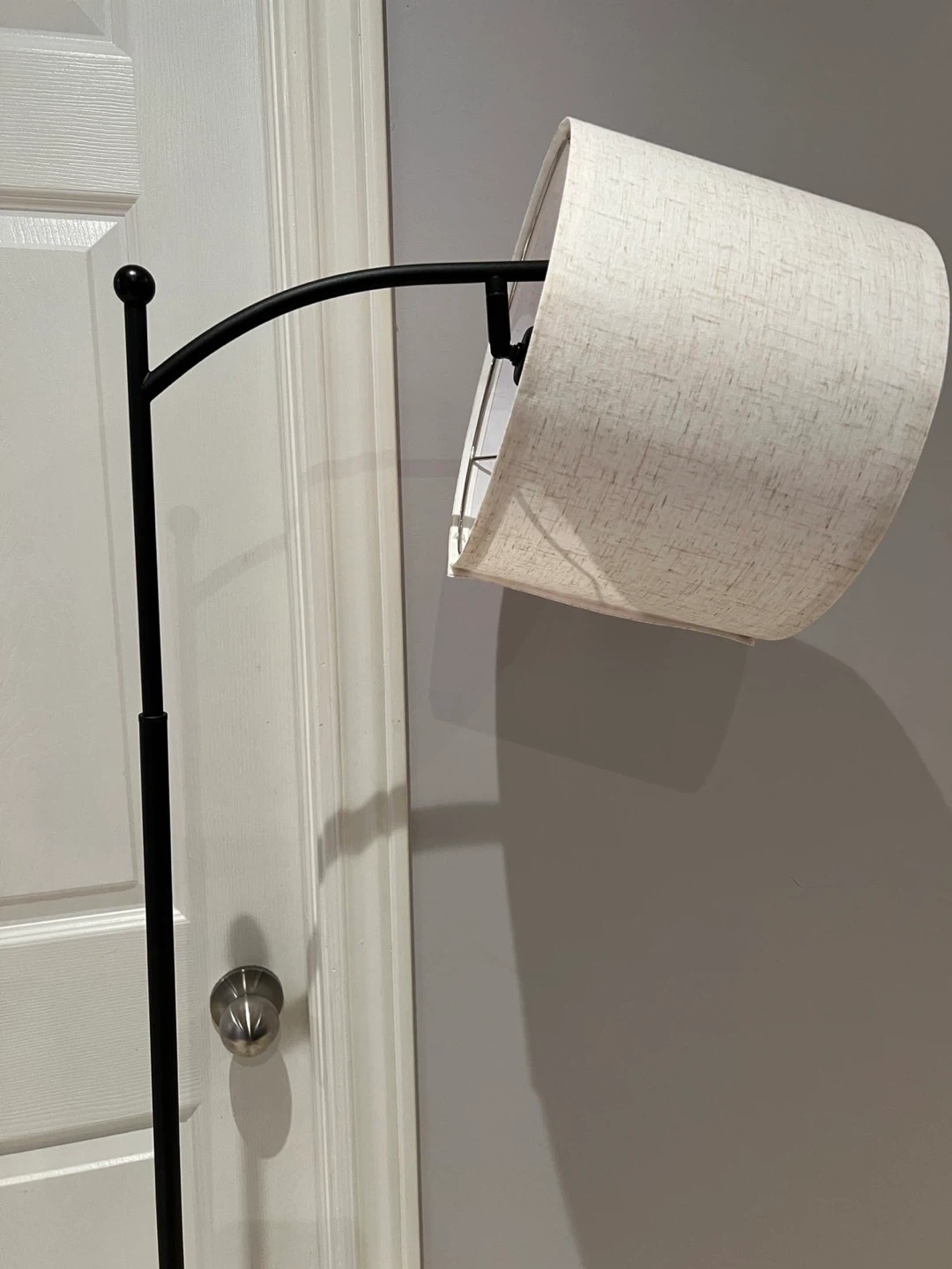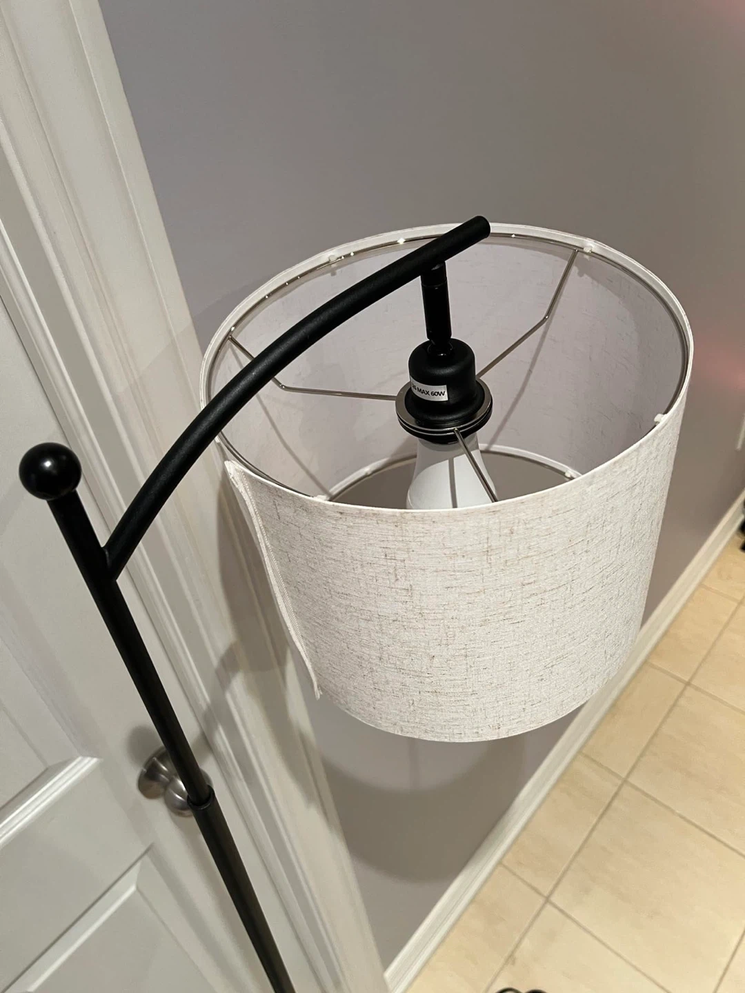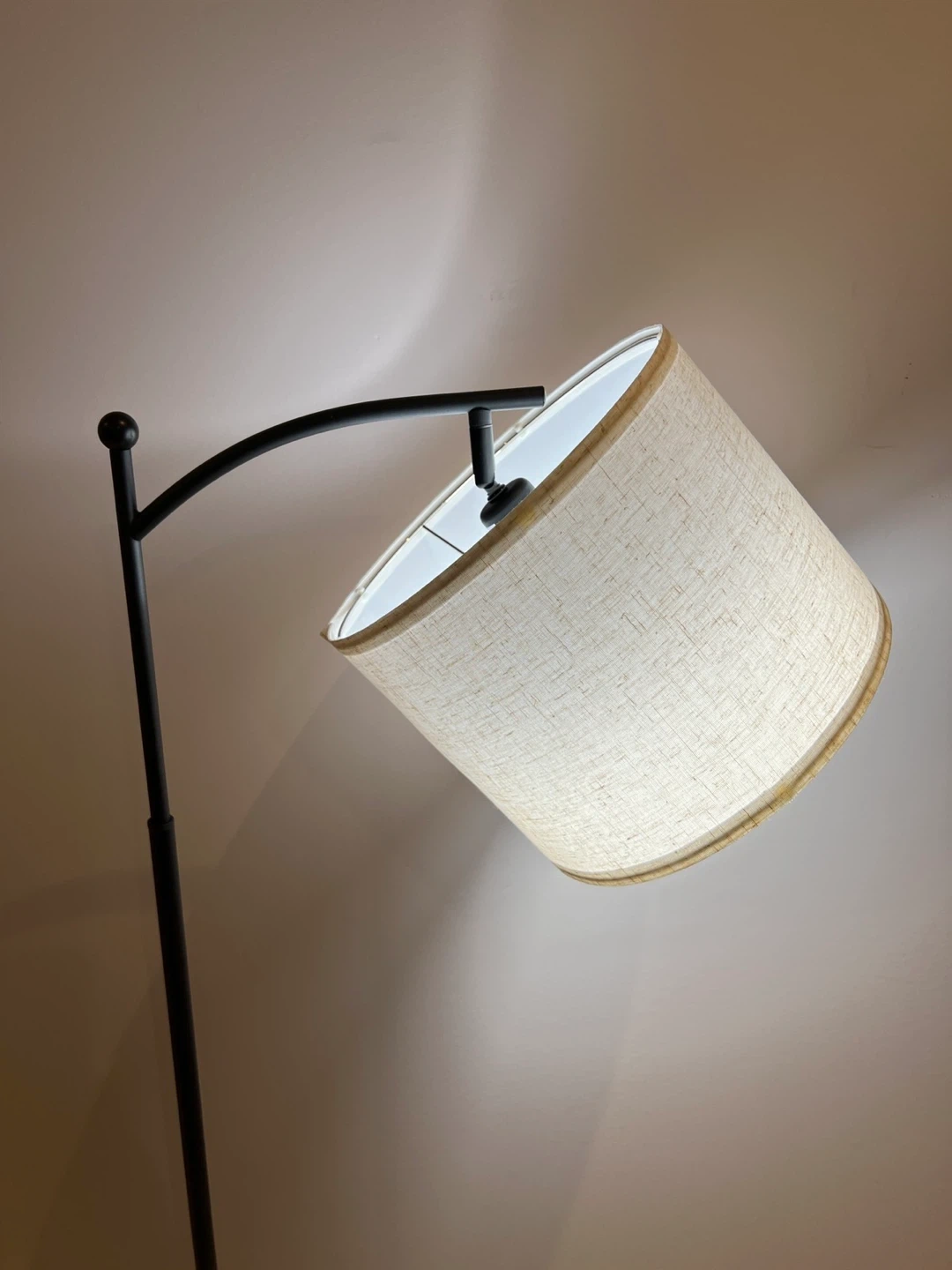 189Selling a stylish floor lamp featuring a black stand and a beige shade. It comes with a remote for easy control. Perfect for adding a touch of elegance to any room!