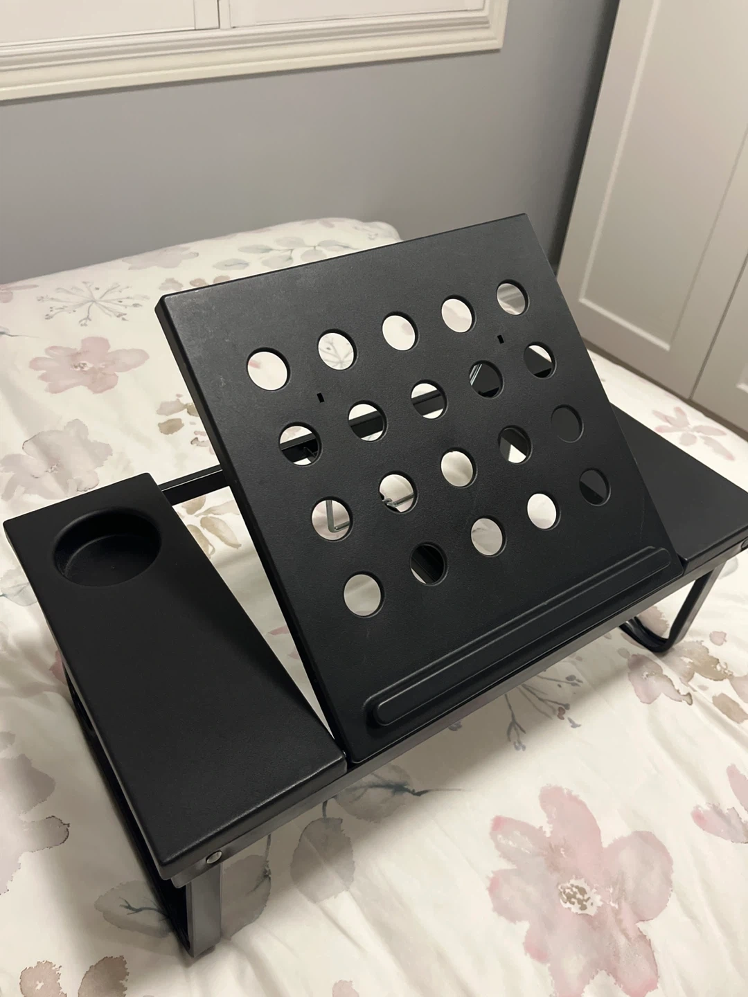 73Selling a handy foldable laptop bed desk! It's in great shape and perfect for working or relaxing in bed or on the couch. The desk features a cup holder and a slot for your tablet or phone, making it super convenient for all your needs