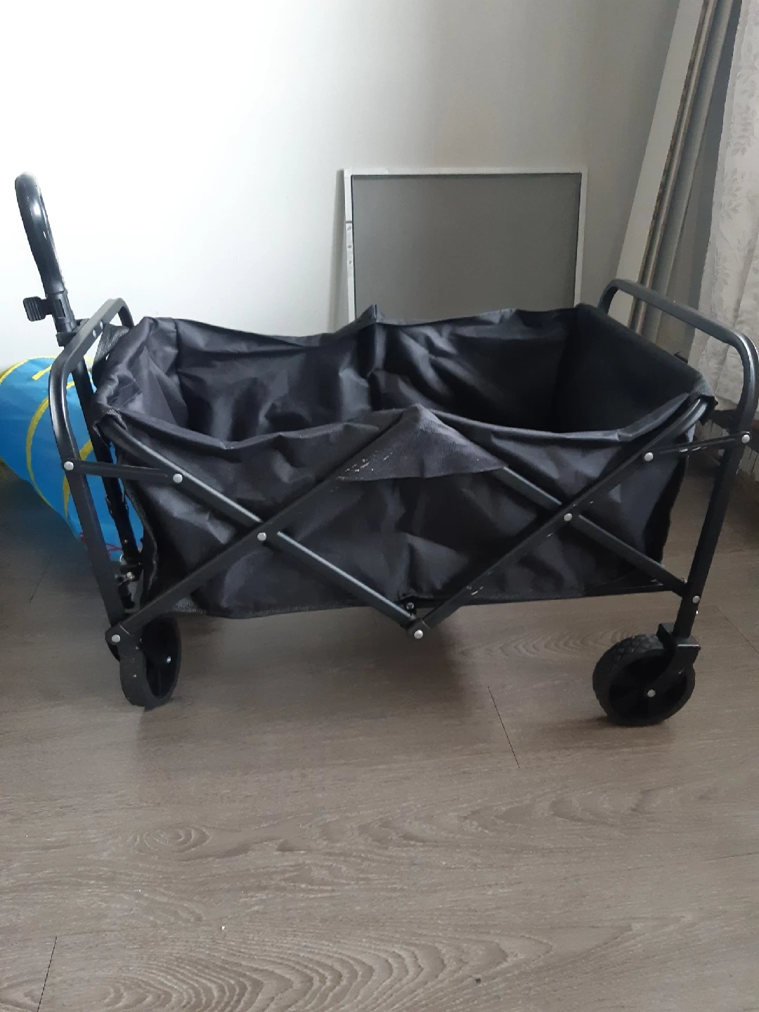 101Selling a foldable wagon in black! It's in great condition and perfect for carrying groceries, beach gear, or anything else you need to haul around. Folds up easily for storage and transport too