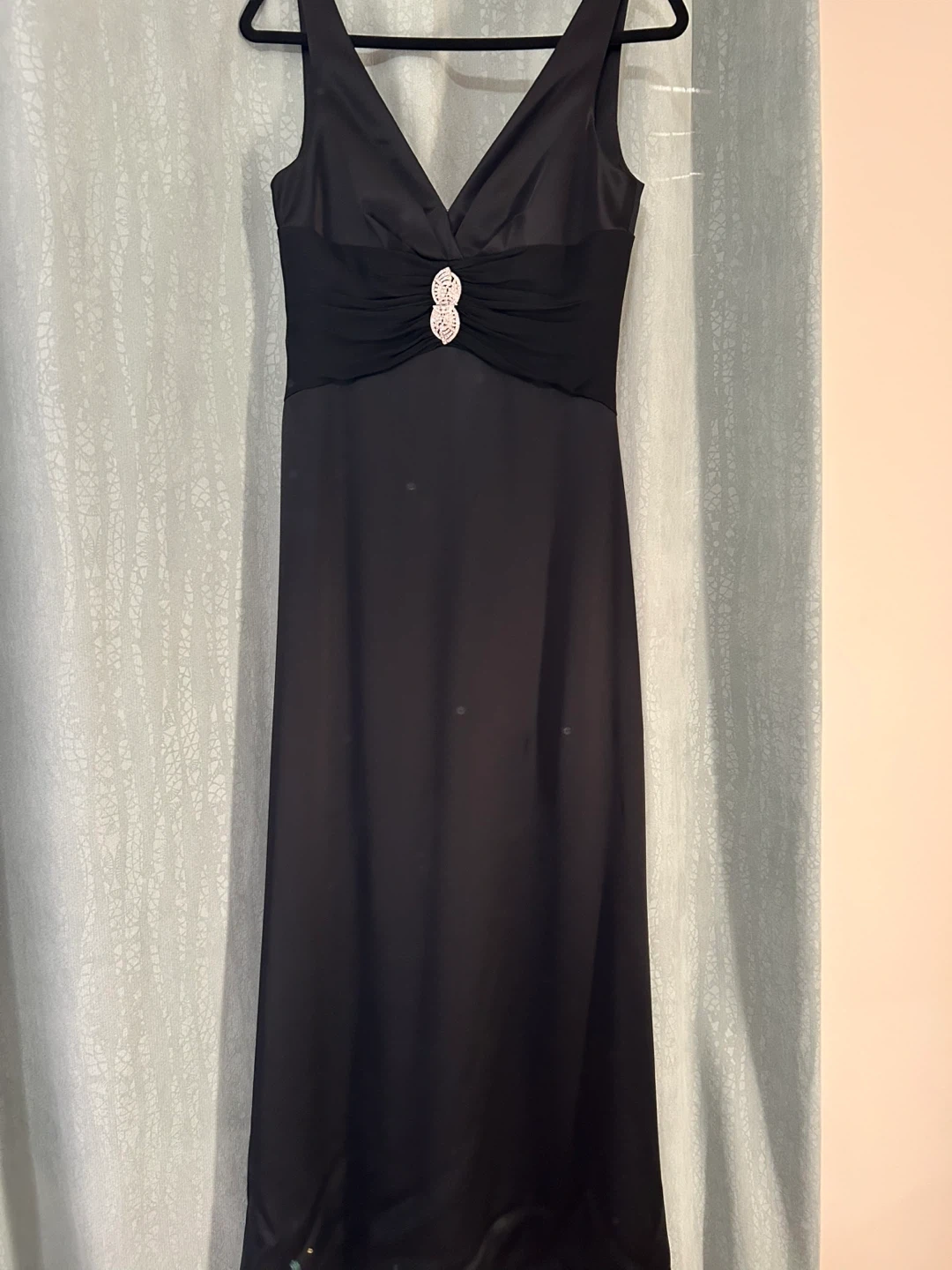 60Selling a beautiful black formal dress that's perfect for any special occasion! It features a flattering V-neck and a stylish design. It's in great condition and ready to wear for your next event.