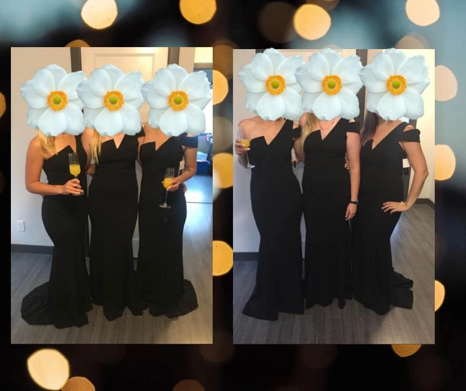 Four dresses available! Were meant to be worn as bridesmaids dresses for a wedding….but covid. The dresses were worn just for pictures above, three with tags one without. One size 12 sold! $200 each (retail for $250US on the website) -Material: Scuba Crepe -Lining: Fully lined -Closure: Hidden center back zipper -Details: One Shoulder, Cutout, -Asymmetrical Neckline -Dry Clean Pickup lymburn