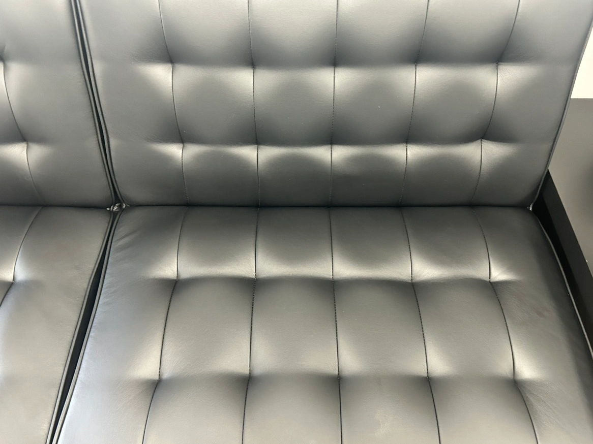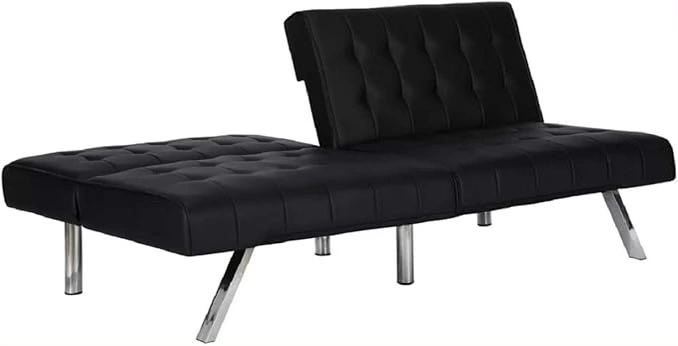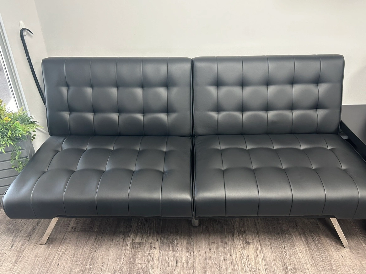 Featuring a sturdy metal frame and a plush faux leather mattress, this futon effortlessly transforms from a sofa to a bed in under a minute.