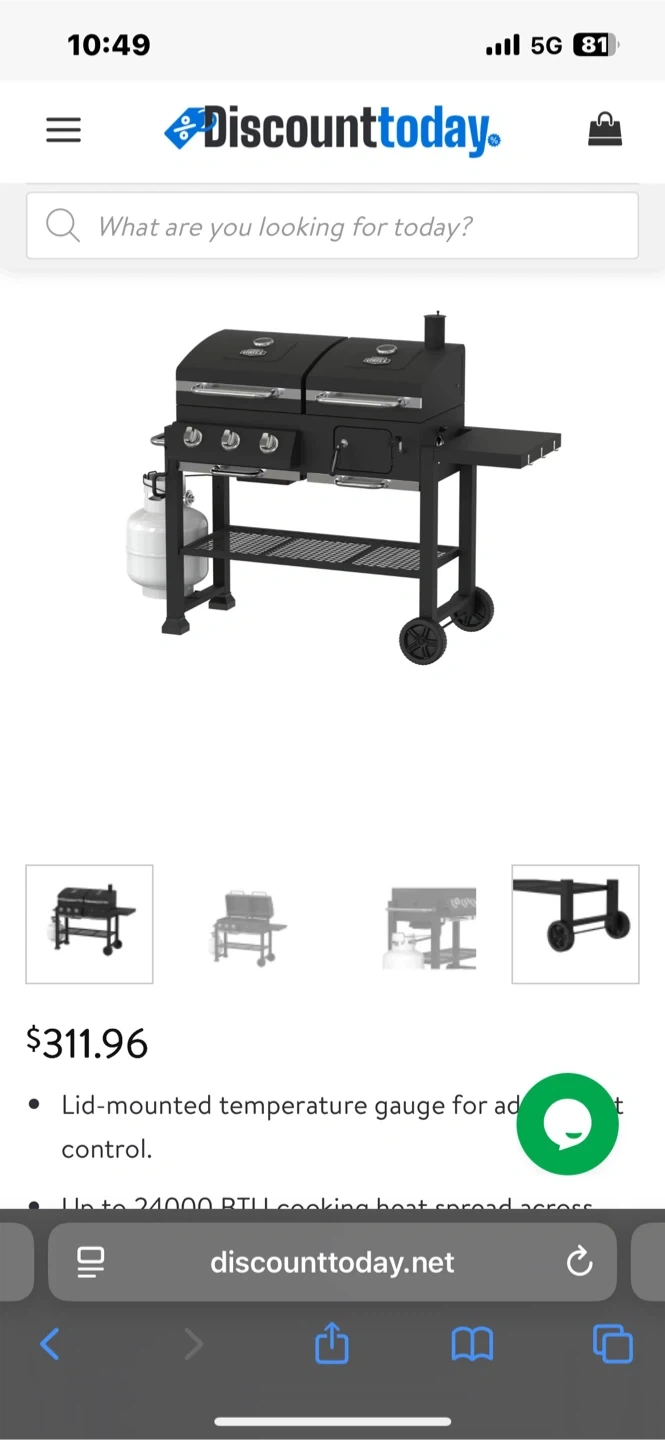 10Selling a gas/ charcoal combo grill. It has a lid-mounted temperature gauge for added control. Tank not included. One deflector may need to be replaced. Could use a good cleaning. Pickup only. No Holds. Must be able to move and transport without assistance.