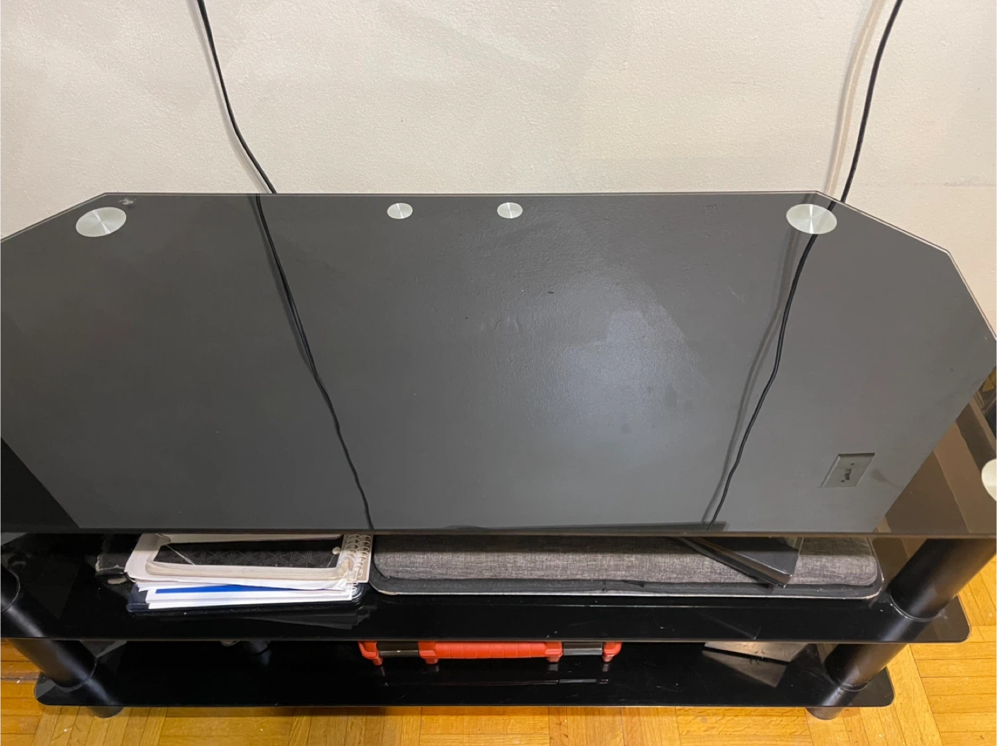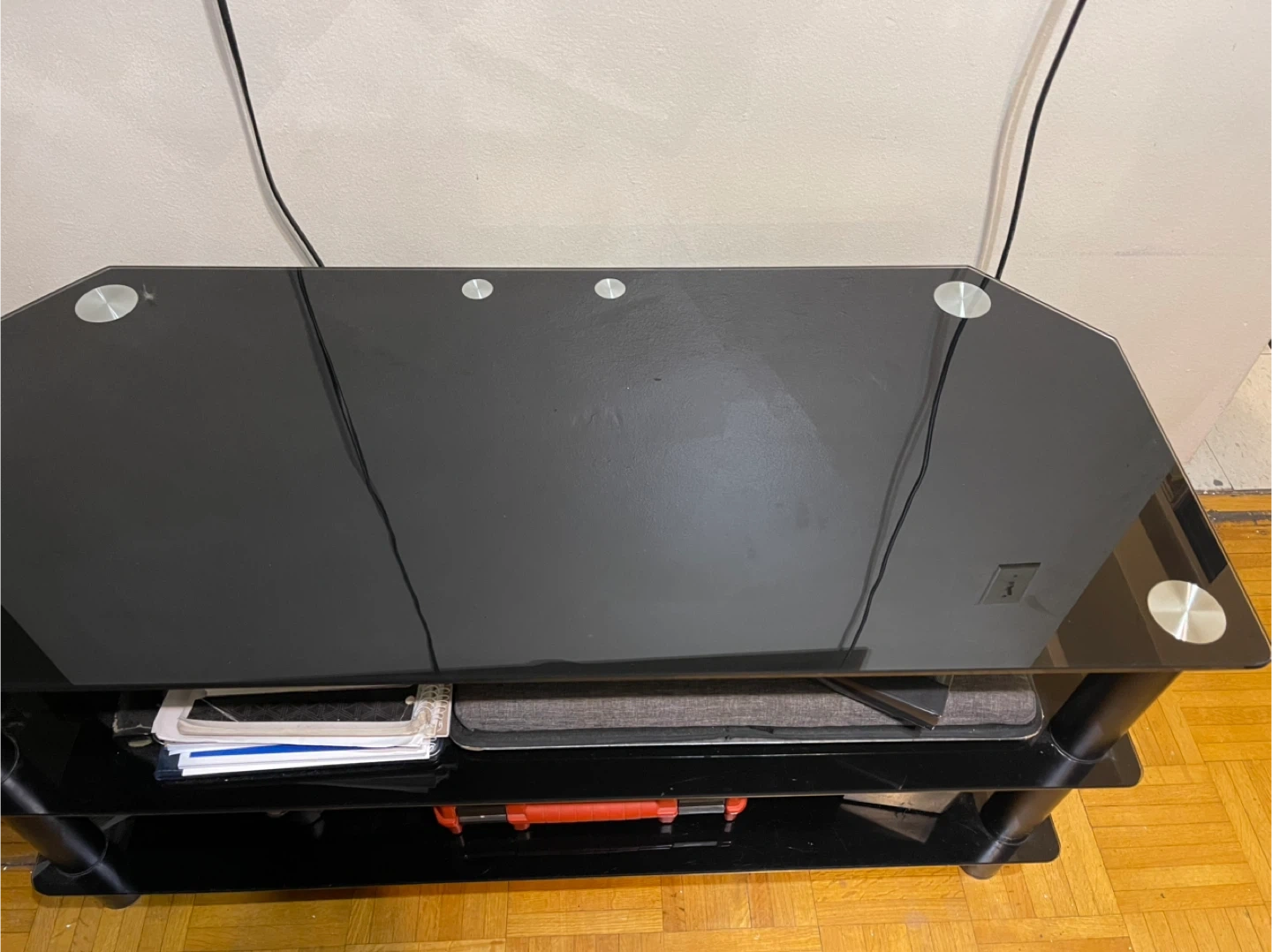 143Selling a black glass TV stand. It has a sleek design with multiple shelves for storage. Perfect for any living room setup! 105cm Width, 40.5cmLength, 50.5cm Height Pick up at Islington /401 / bergamot avenue Etobicoke . I accept Cash only. If you see the add up it’s available. 🔷PLEASE CHECK OUT OUR OTHER LISTINGS TOO🔷