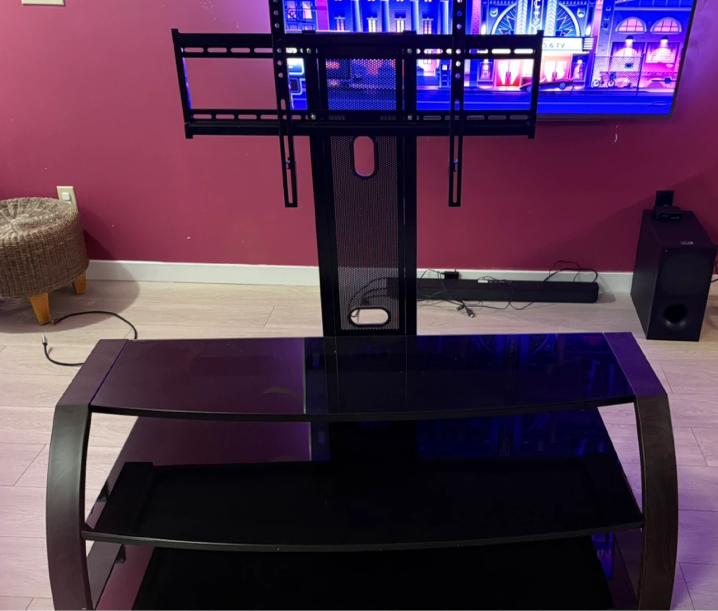 5Selling a sleek black glass TV stand! It features multiple shelves for your media devices and a built-in mount for your TV. Perfect for organizing your entertainment area and adding a touch of modern style to your living room