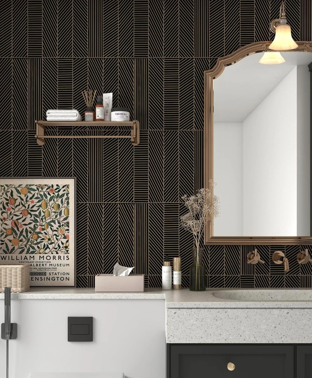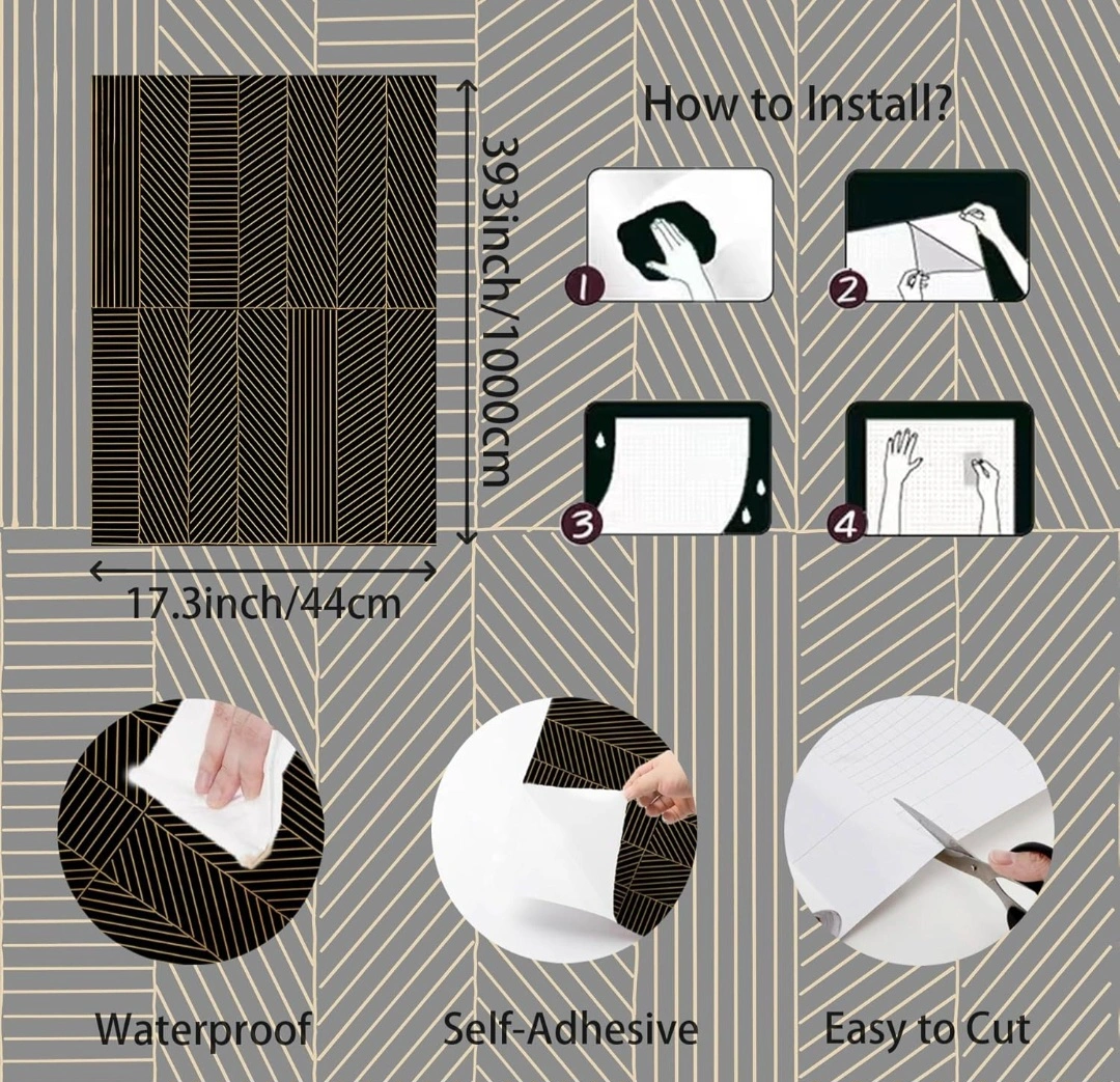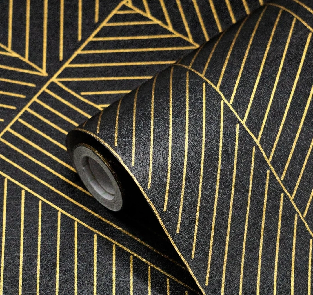 Black and gold geometric wallpaper. Self-adhesive, waterproof and easy to cut. New. 17.3"x393"