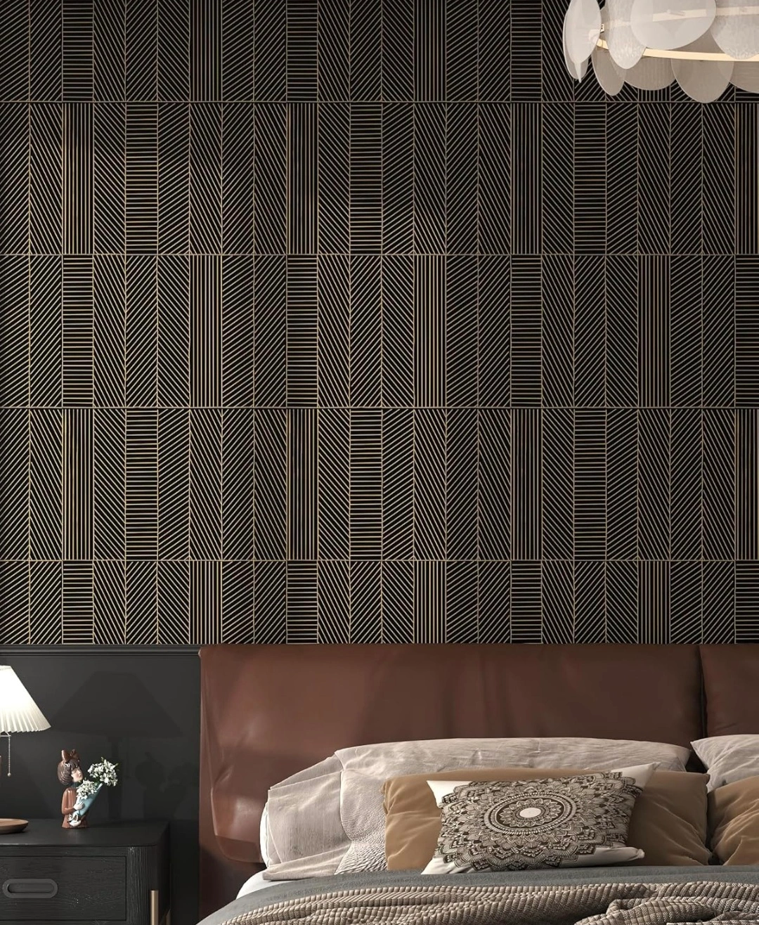 Black & Gold Modern Geometric Peel & Stick Wallpaper 17.3"x393"