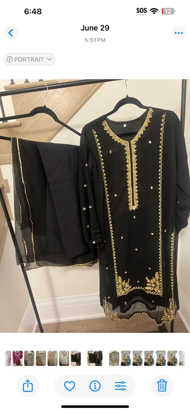 5Selling a beautiful black salwar kameez suit with gold embroidery. It's in great condition and perfect for a special occasion!