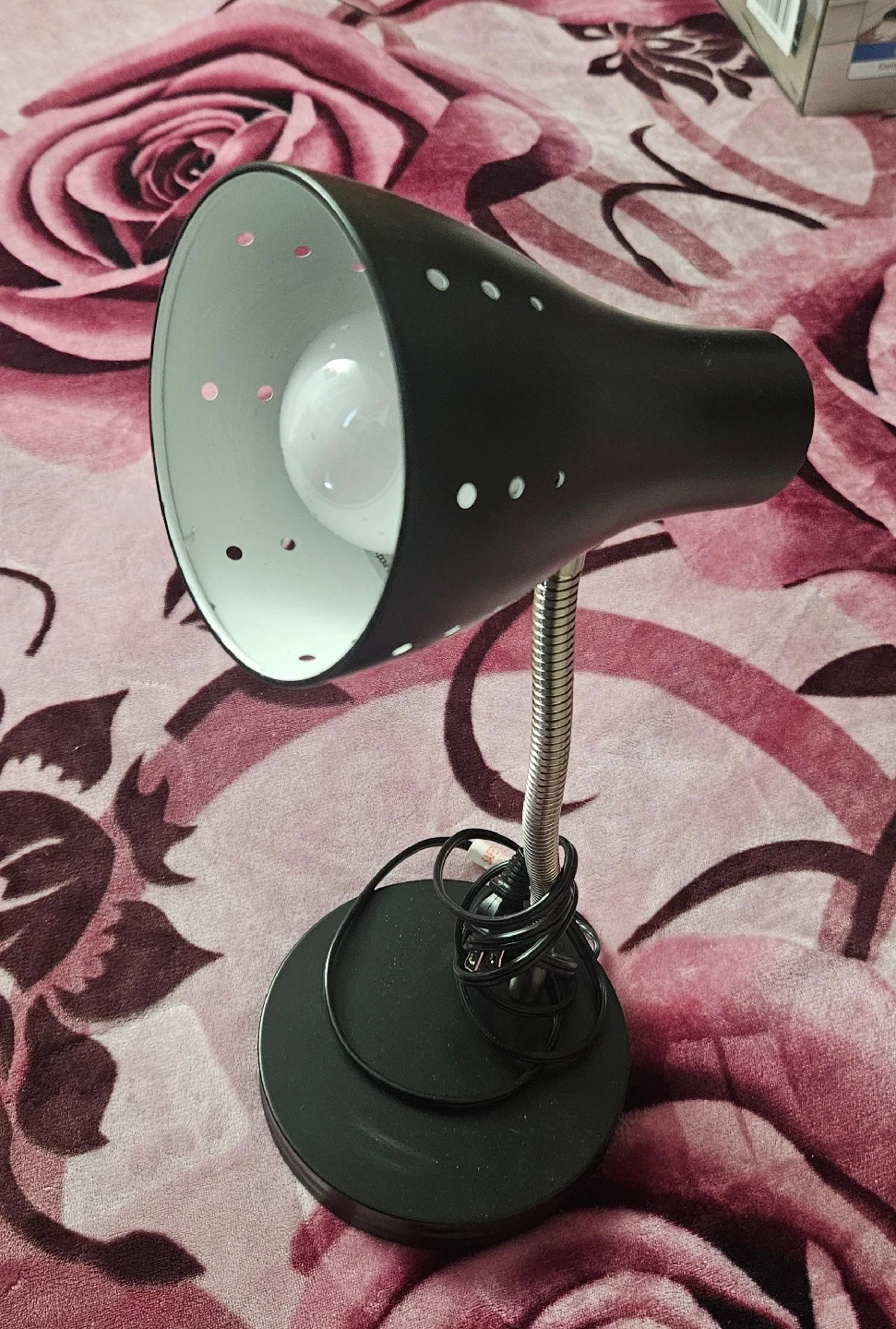 144Here's a handy black gooseneck desk lamp! It's perfect for adding a bit of light wherever you need it. The gooseneck design lets you adjust the angle easily, making it great for reading or working. It also has three levels of brightness that can be dimmed, increased, or turned on and off by touching the screen.