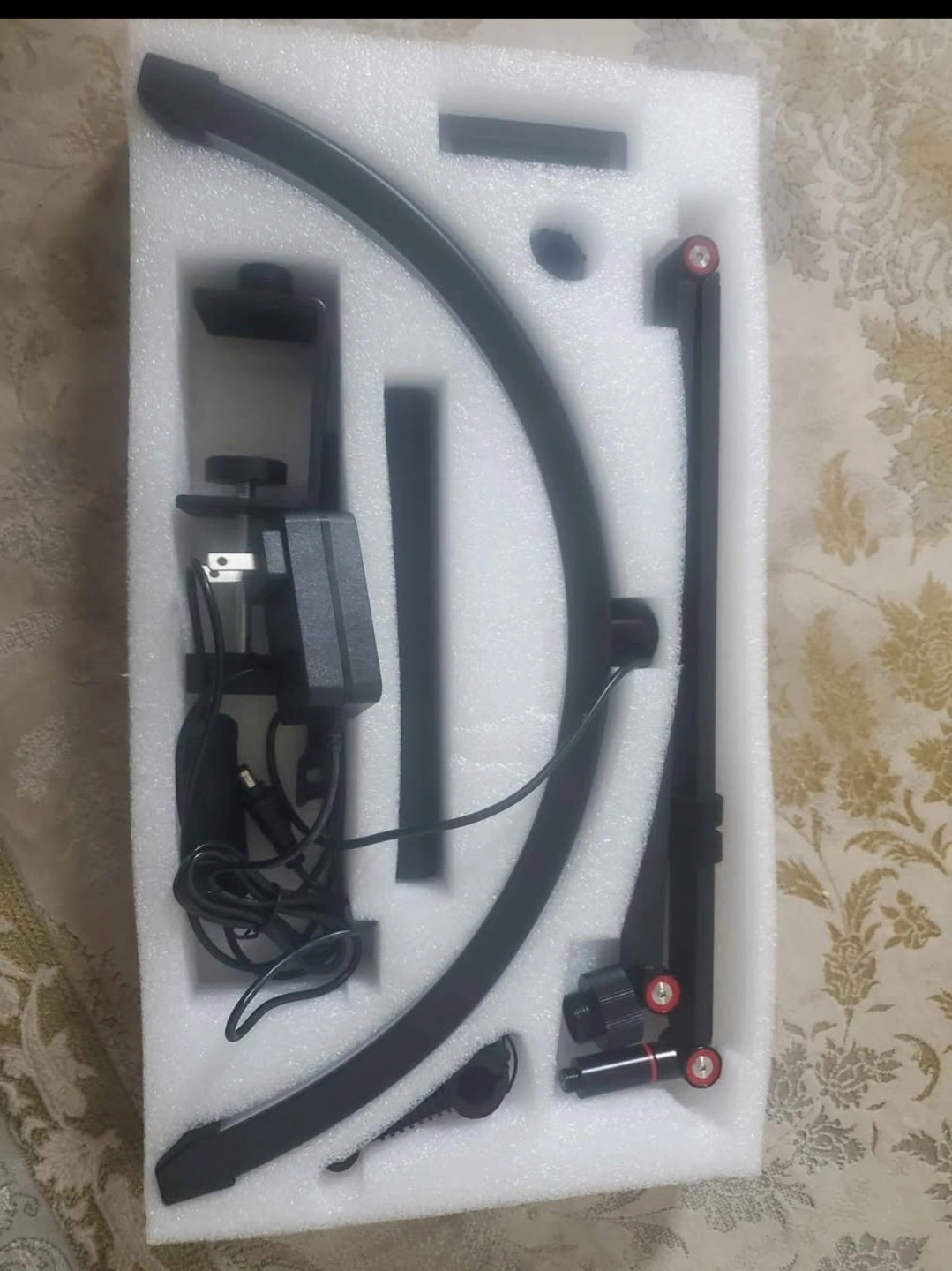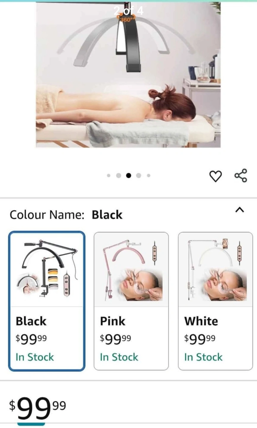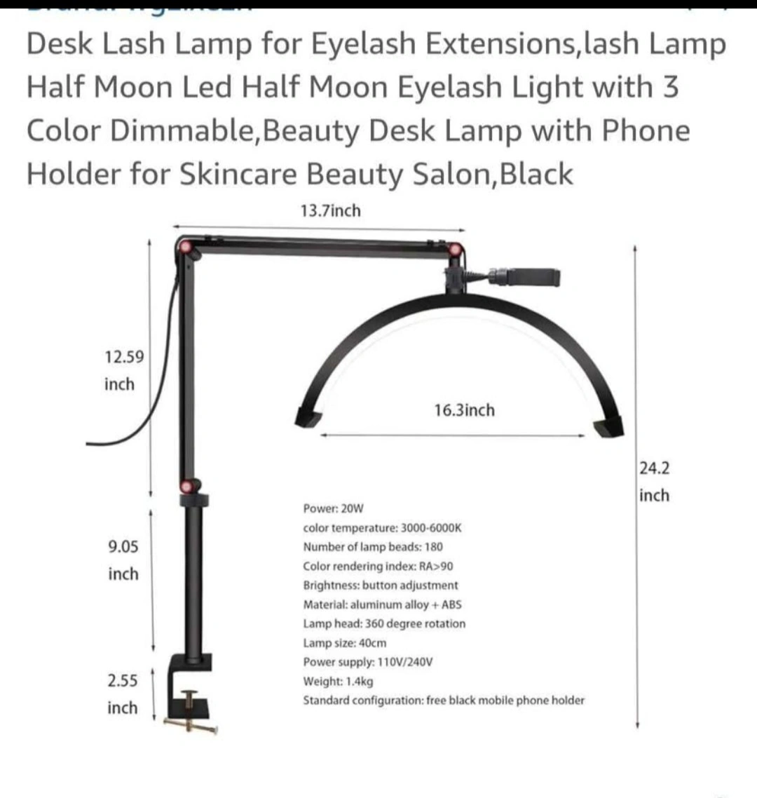 Desk lamp for eyelash extensions. 3 colour dimmable LED light. Includes phone holder. Adjustable arm and clamp. Black colour.