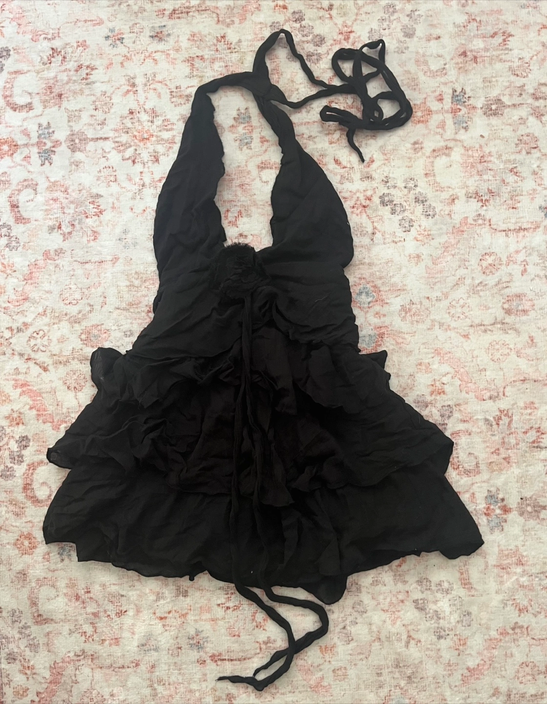 95Selling a cute black halter dress with a rose in the centre it’s a low cut in the front chest area and so cute mamacita