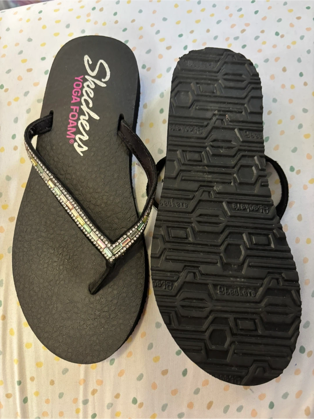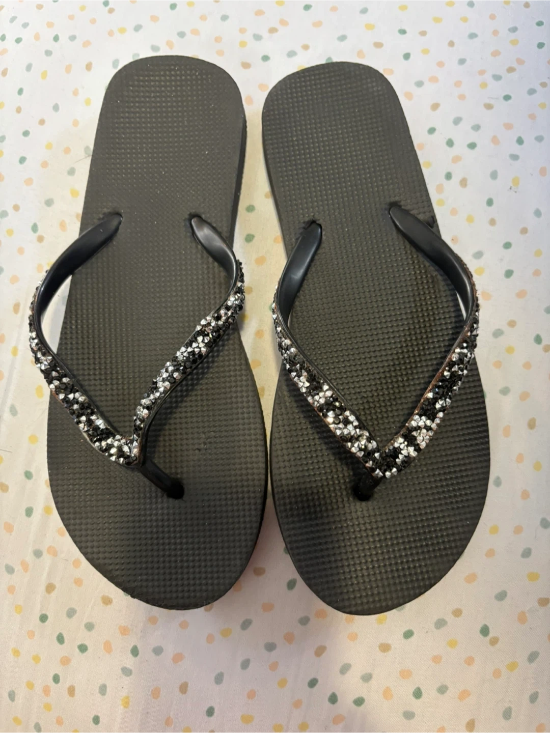 713 pairs of cute black flip flops; white sparkle design, a floral design and a colour sparkle design. Size 6-7 $5 each