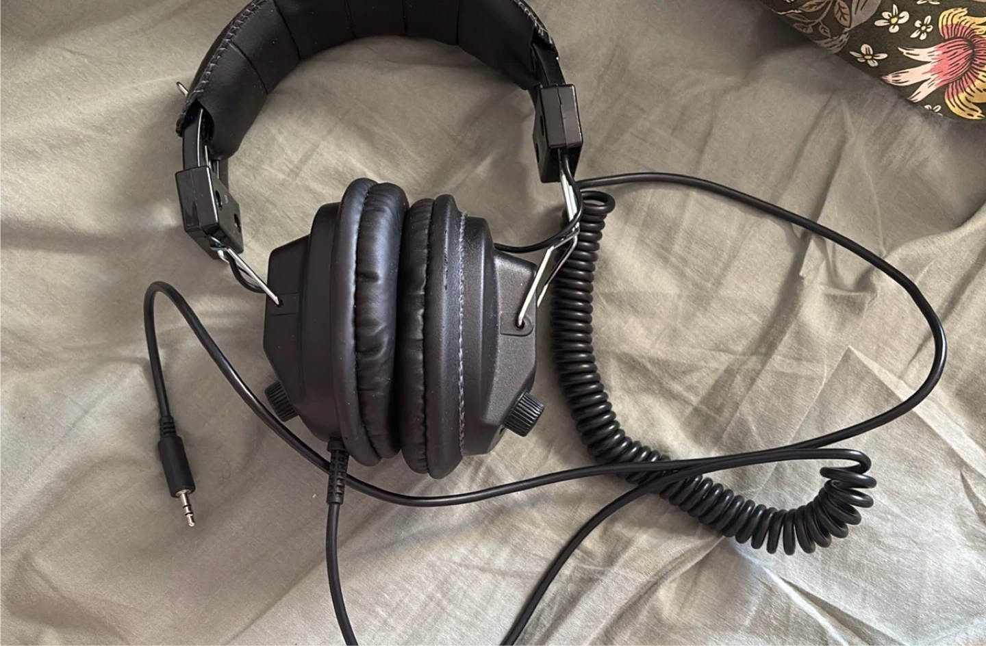 Selling a pair of black headphones. They feature a coiled cable and adjustable headband. Regular headphone jack plug in. Perfect for listening to music or podcasts!