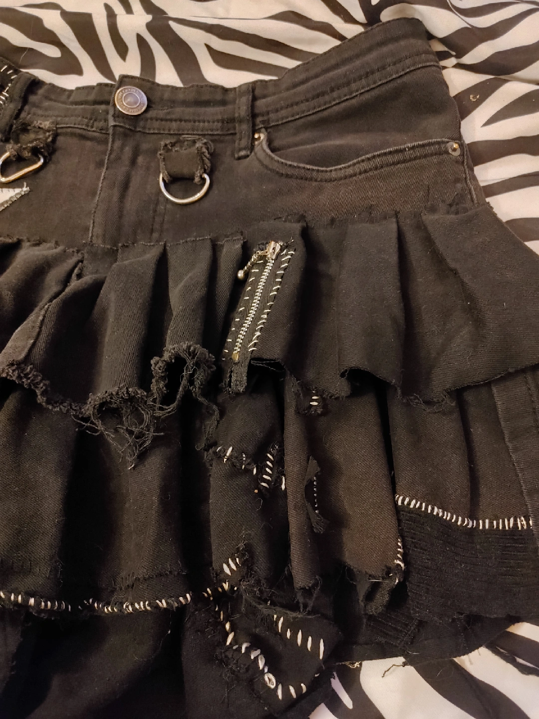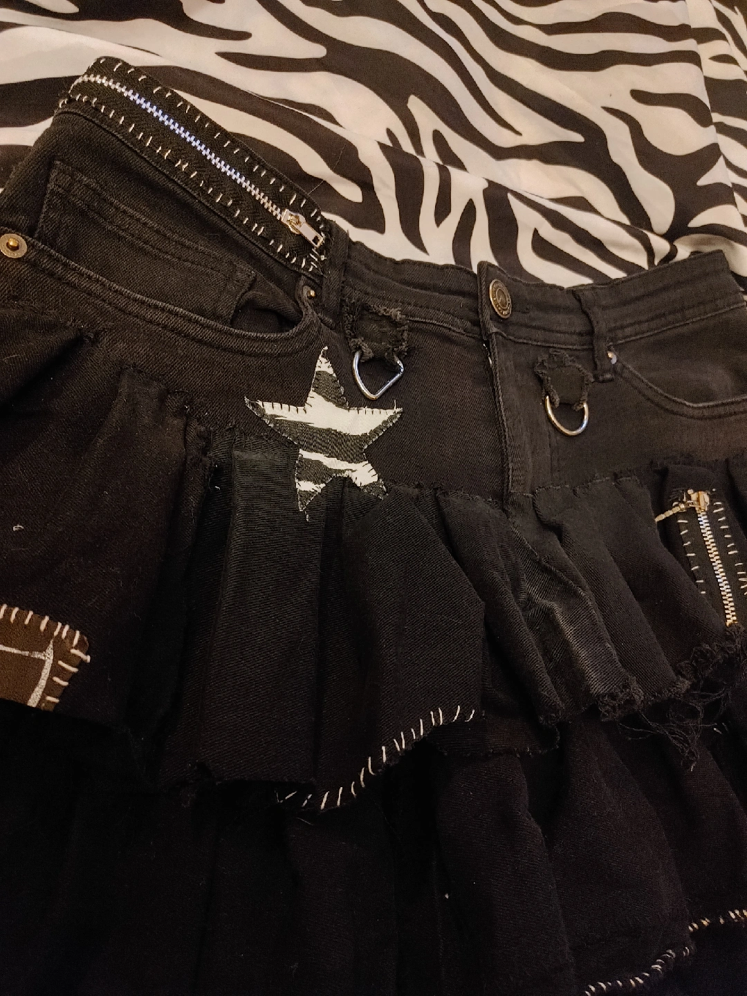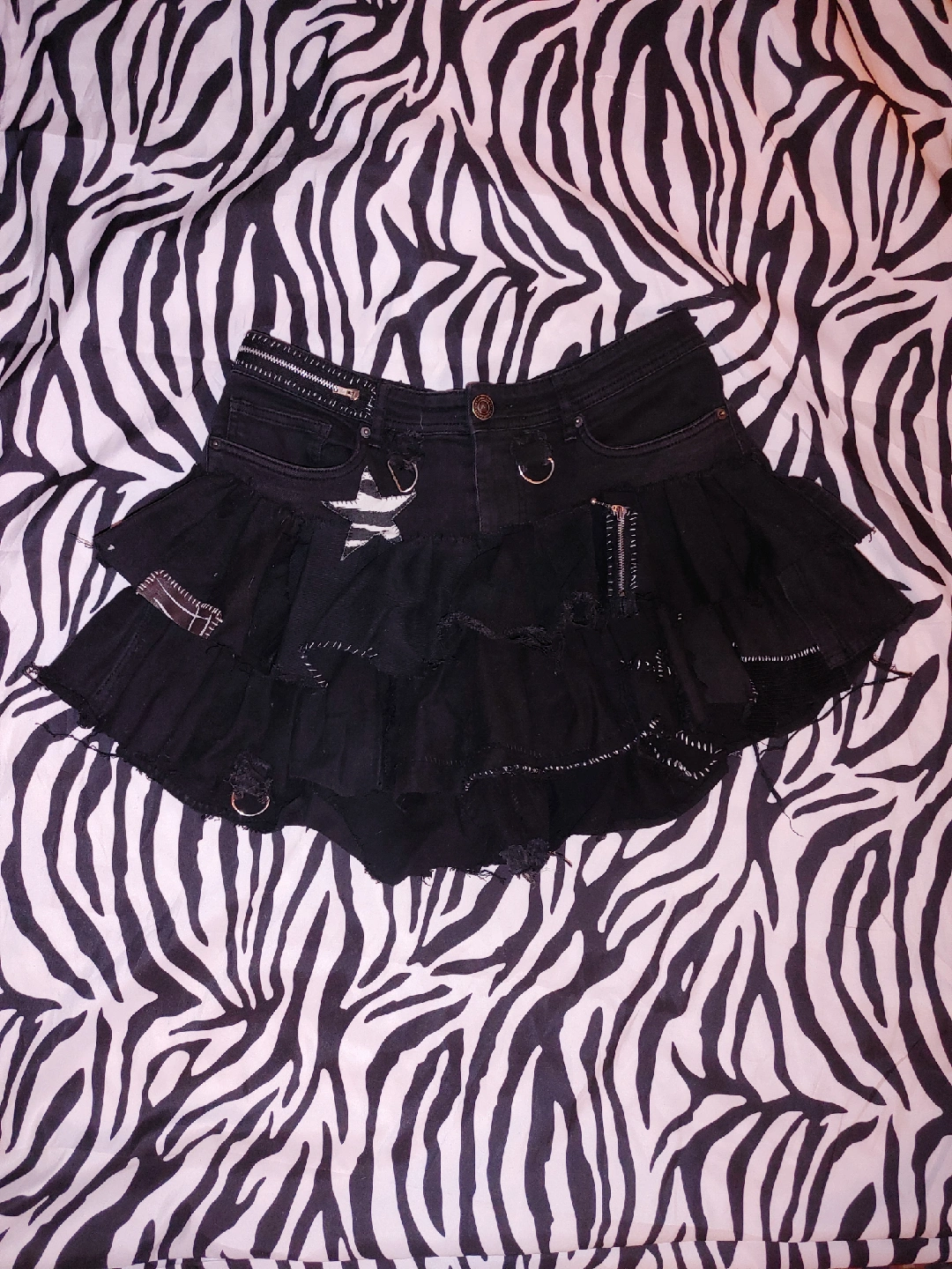 36 inch waist. used to be a pair of pants but i remade it into an adorable, kinda bada$$, skirt x)