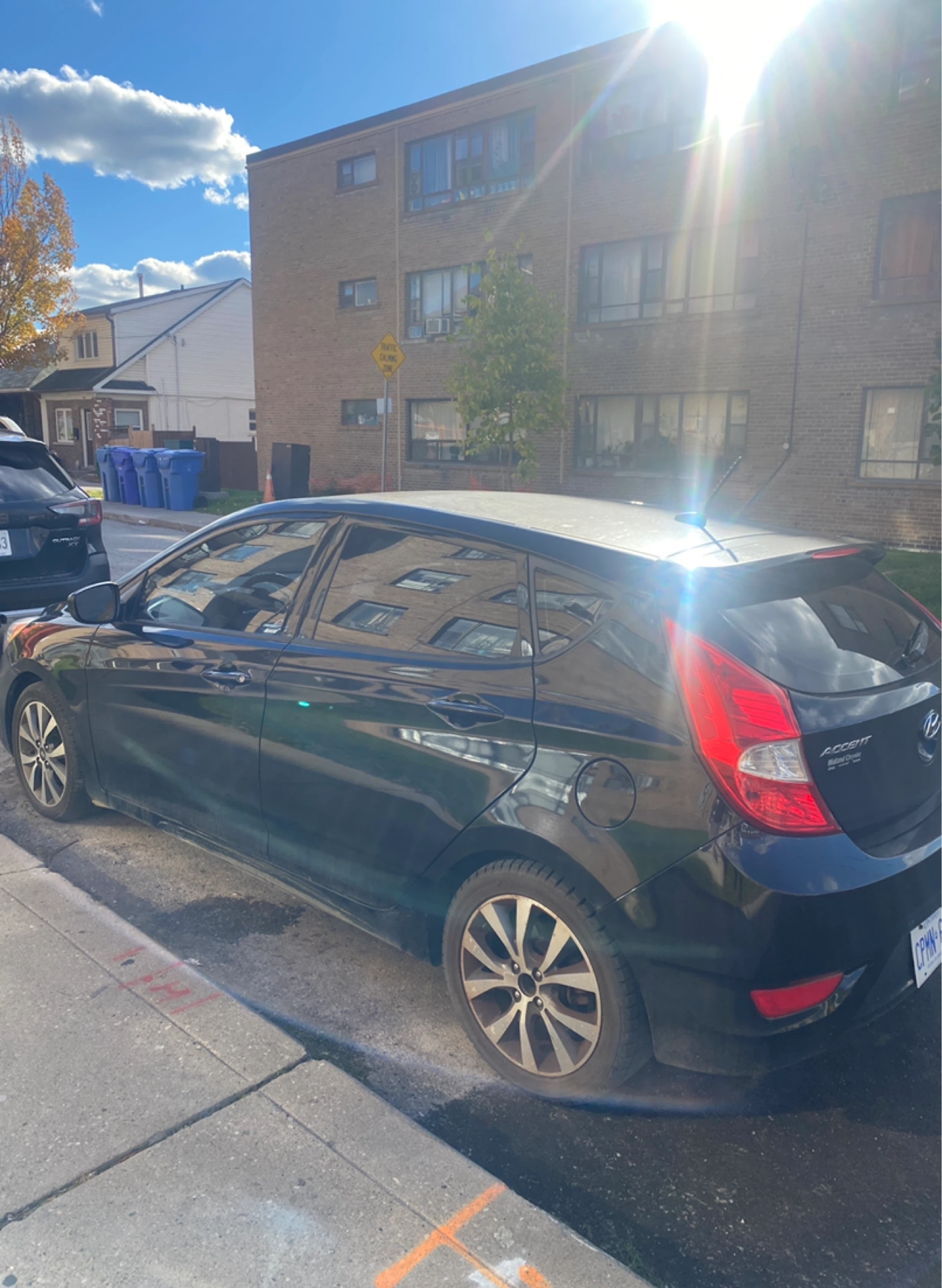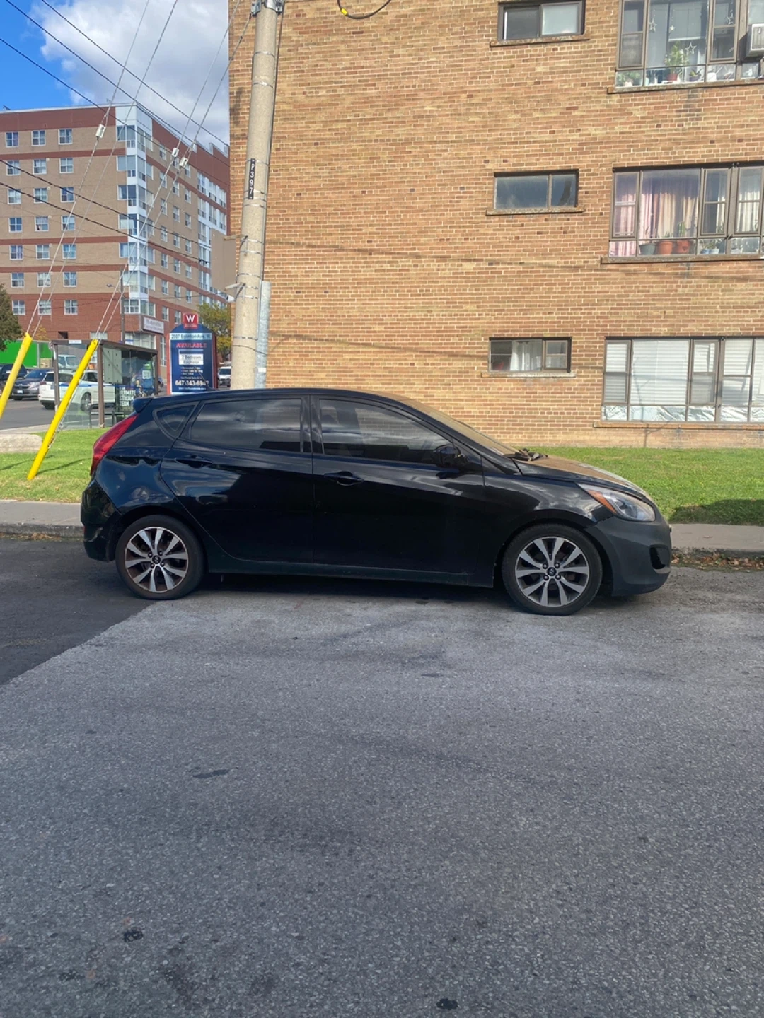 Selling a black Hyundai Accent hatchback. It looks like it's in good condition. Great for getting around town! 300k km Engine leaking.