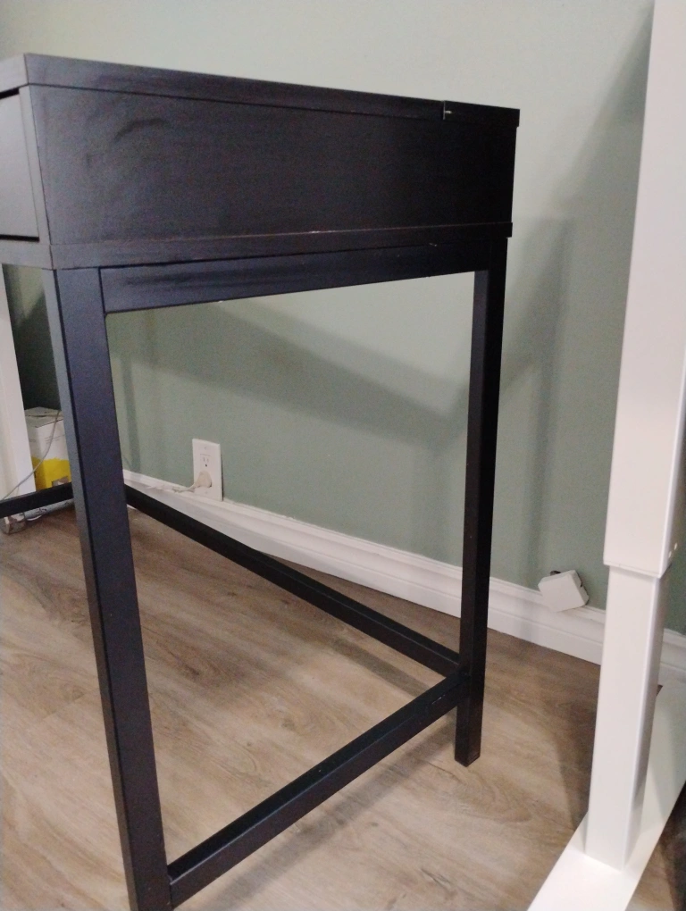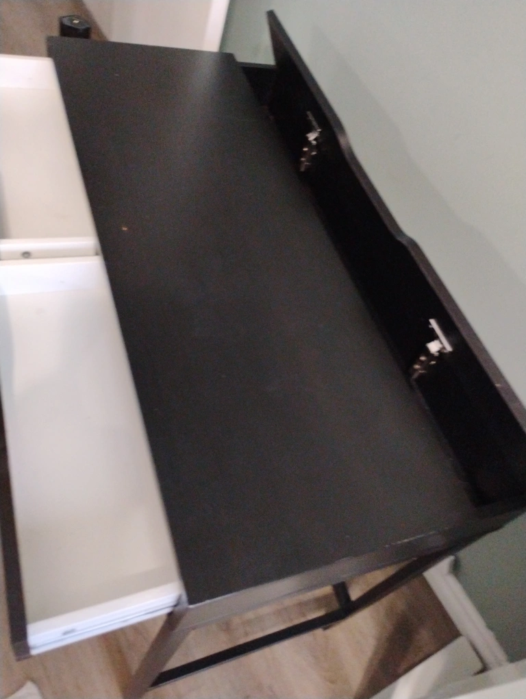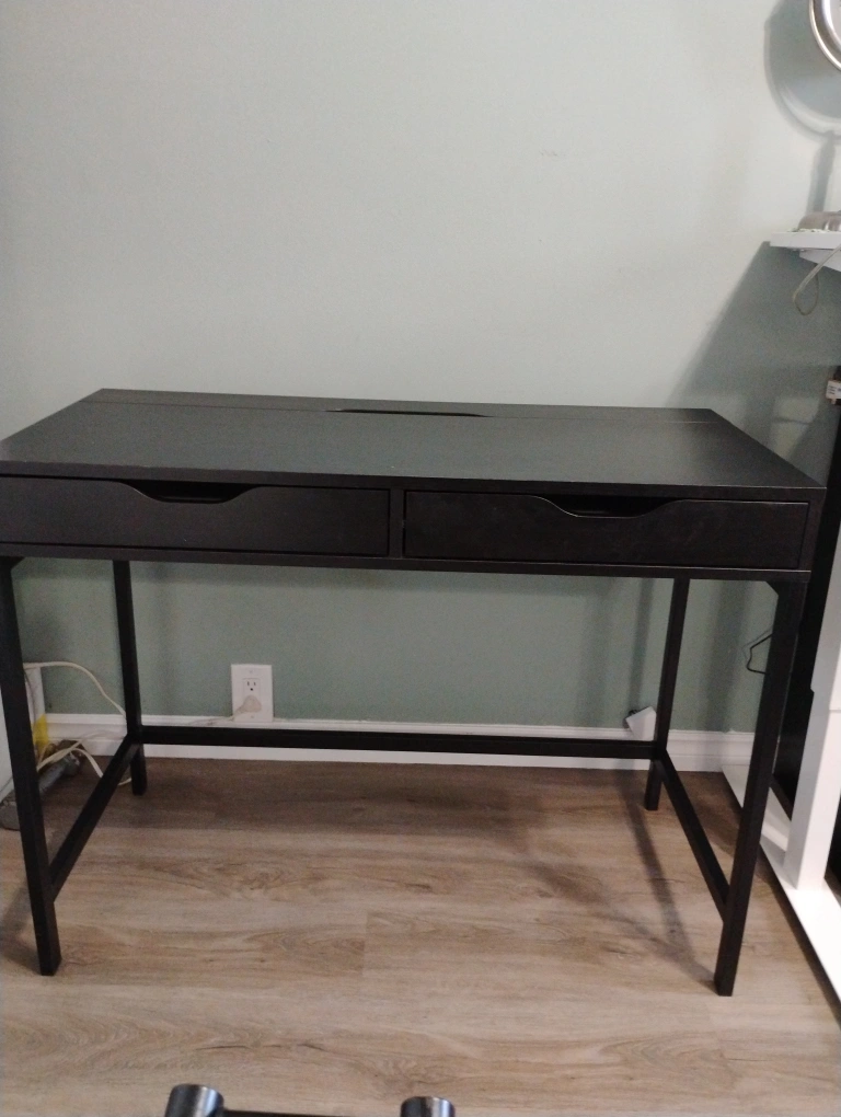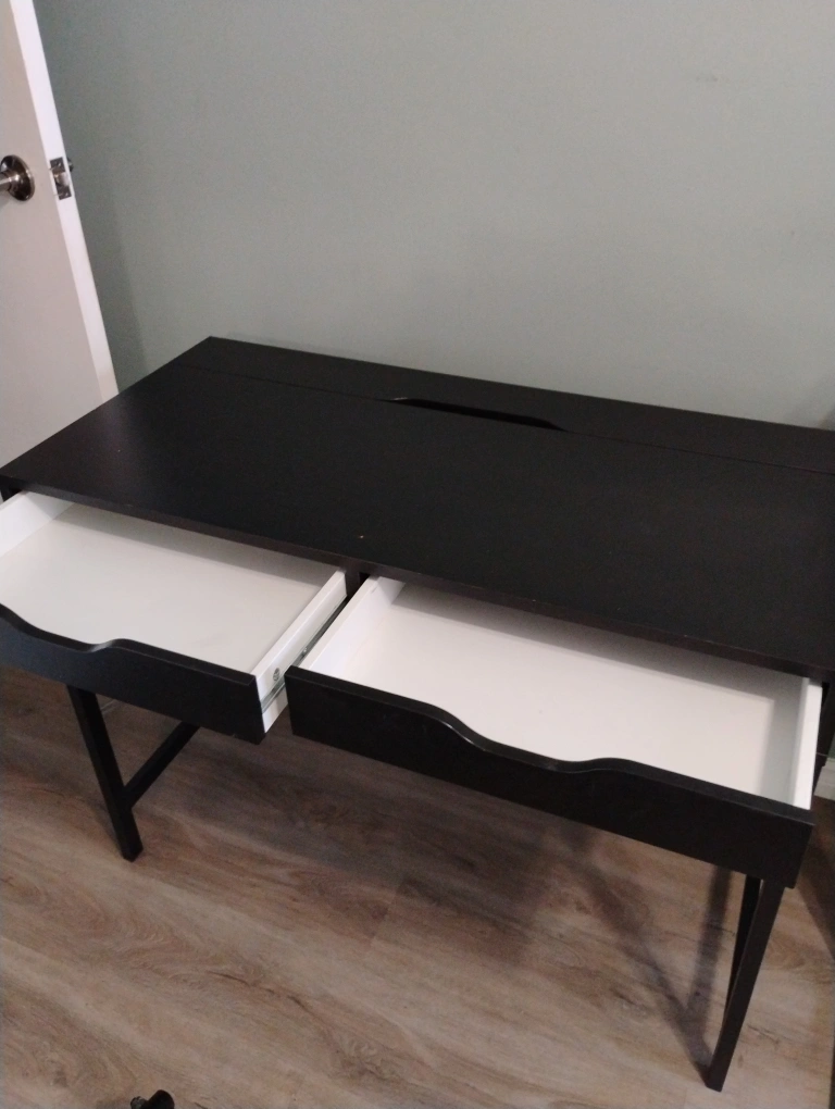 150Selling a simple black desk! It has two drawers for storage. Place to hide cords or other treasyres. Great for a home office or student. In good condition and ready for a new home