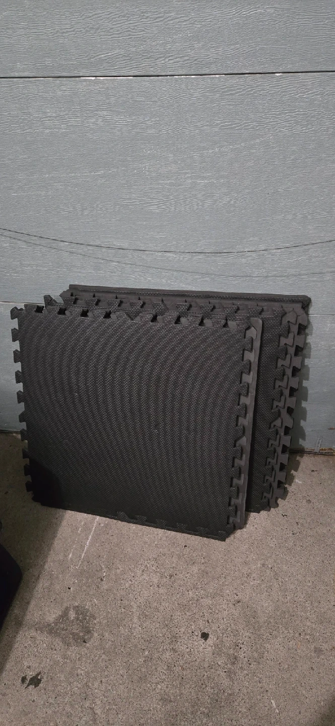 72Selling a set of black interlocking foam floor mats. These are great for creating a comfortable and safe workout space, or for use in playrooms. They are in good condition and ready for a new home!
