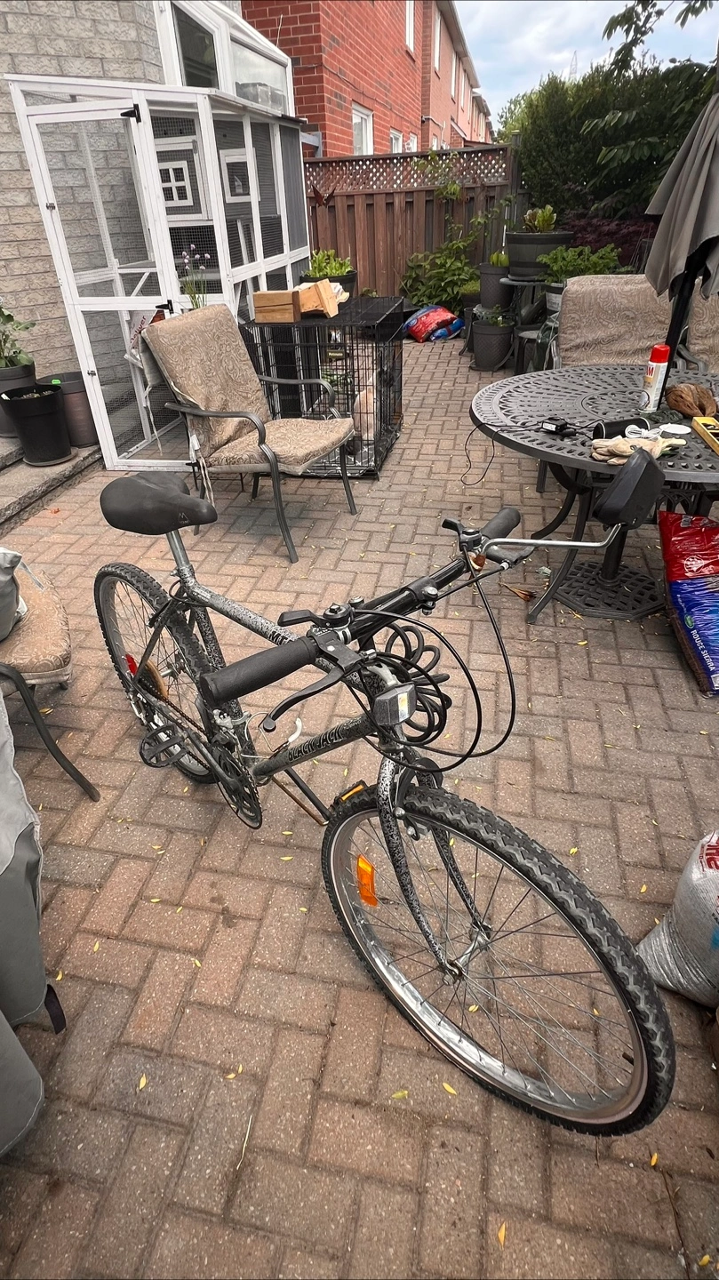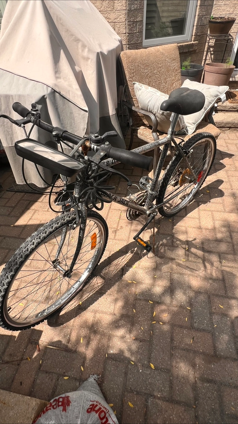 An enjoyable bike to ride. It has two wheels, with a seat, pedals, and handlebars. It could be a great way to get some fresh air. Needs some basic maintenance , brake check, oil for chain, air for tires, gear check. Has been sitting on the shed for ten years unused.