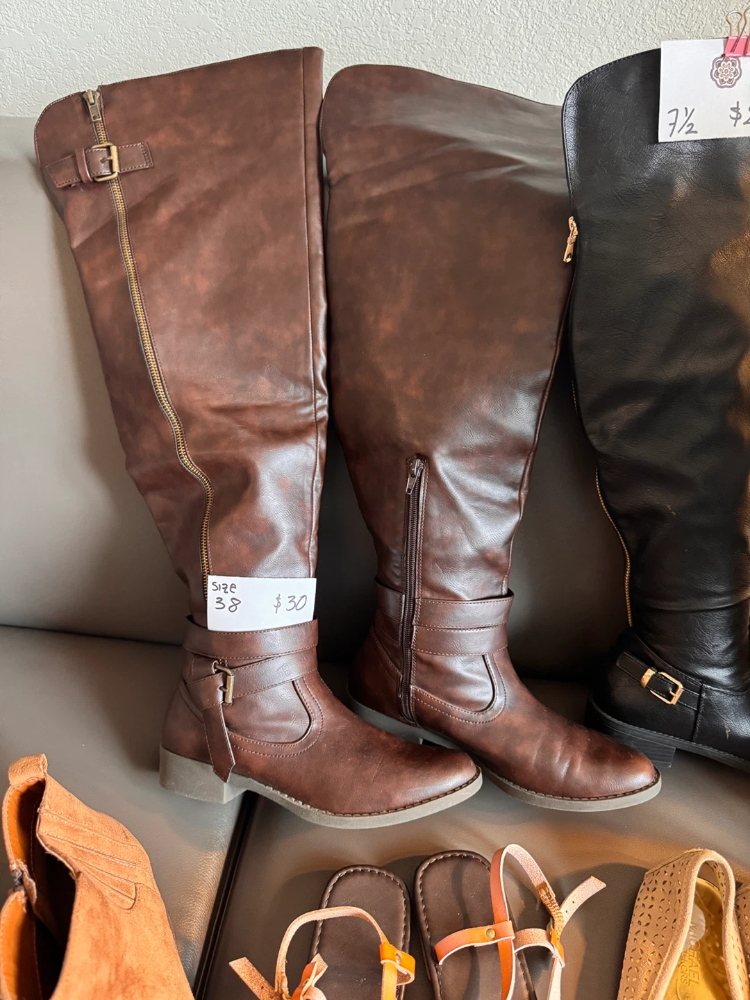 10Different shoes, boots over the knee, leather sandals, flats, etc Price is low because I want to sell them fast. MAKE ME AN OFFER pickup area is Dixie and Eglinton