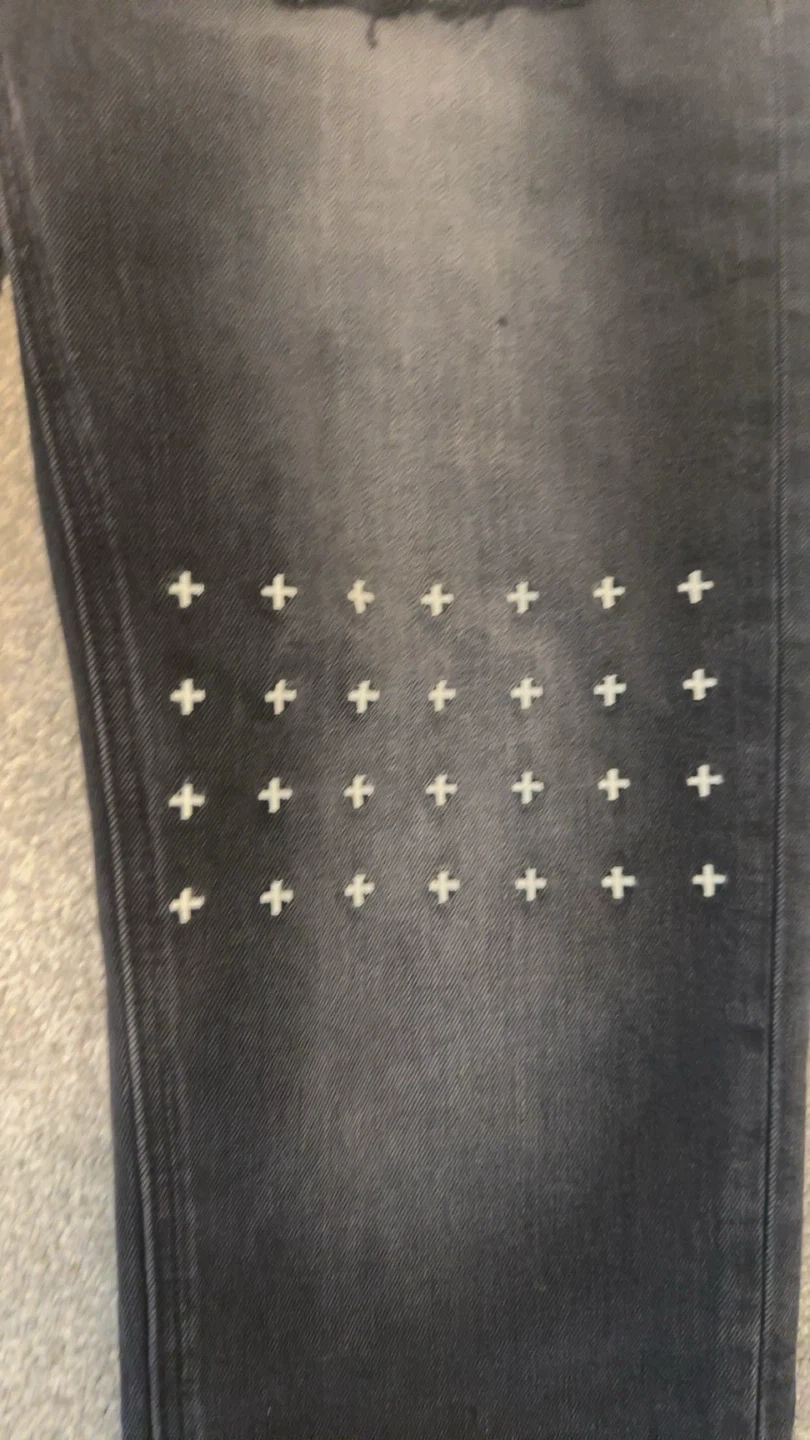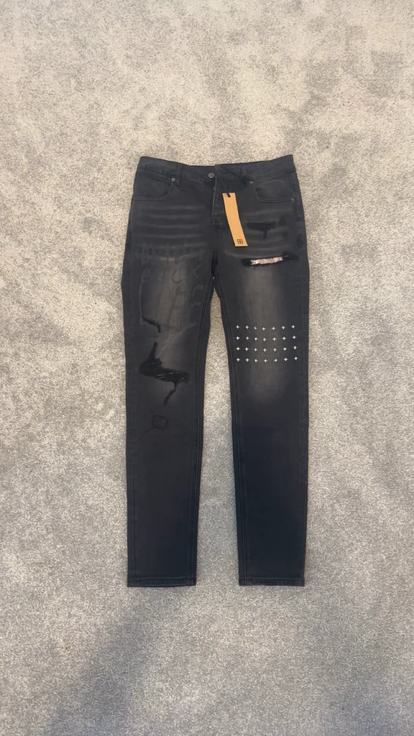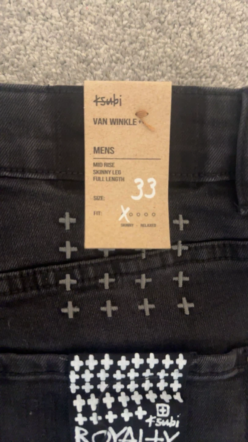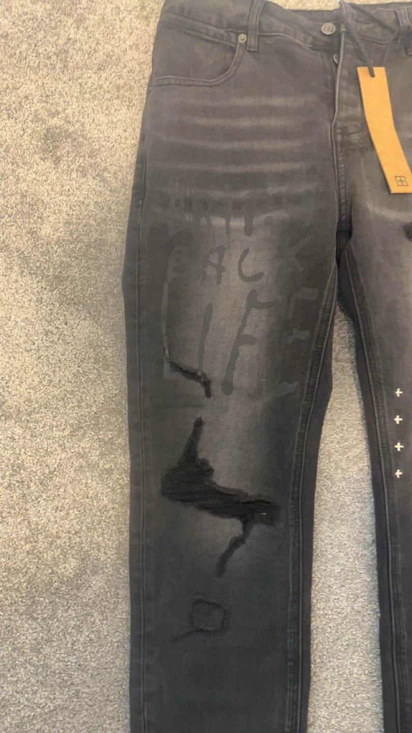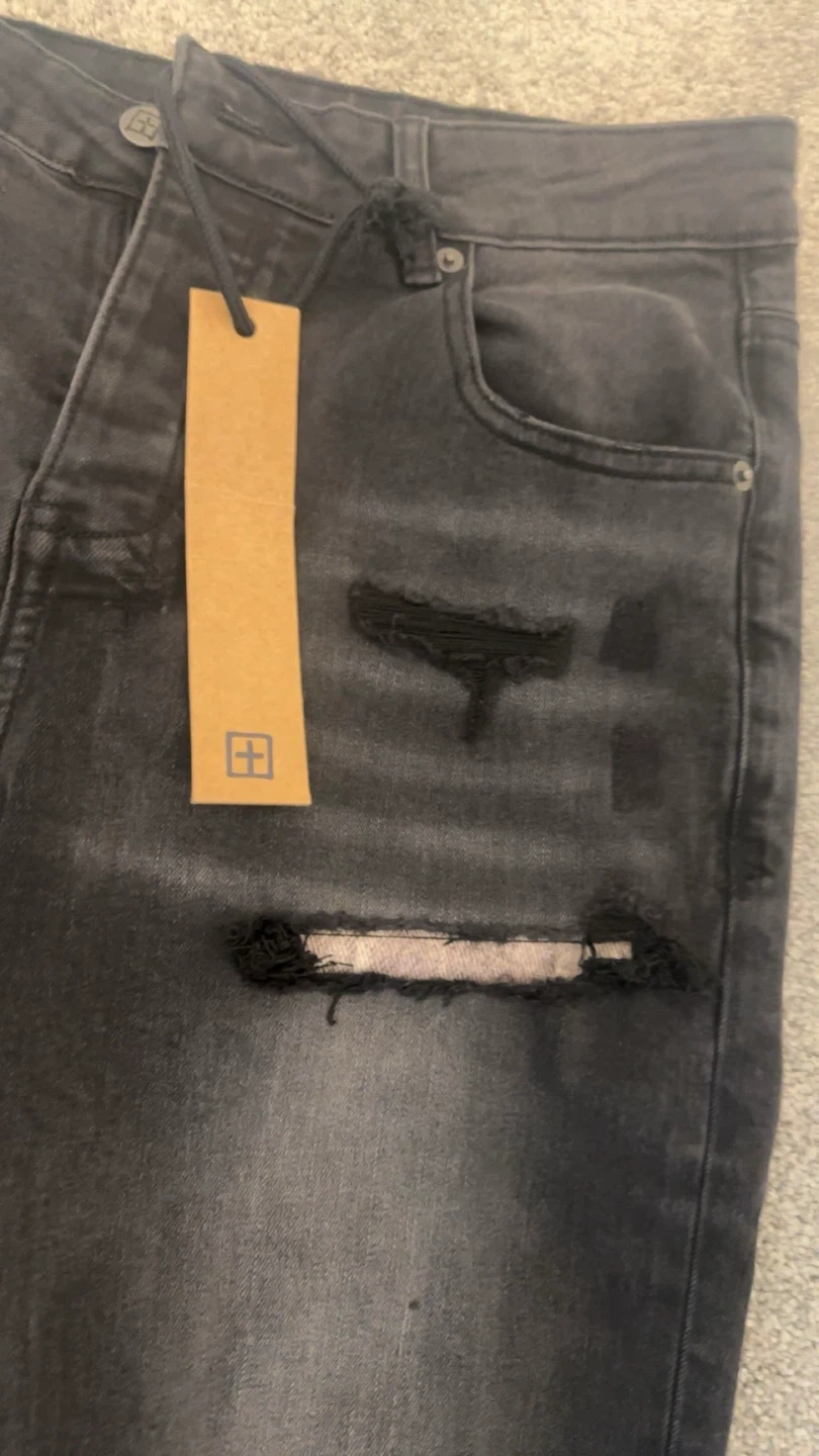 14Selling a pair of black ksubi jeans. They feature a unique design with distressed details and graphic accents. Great for adding an edgy touch to your wardrobe!