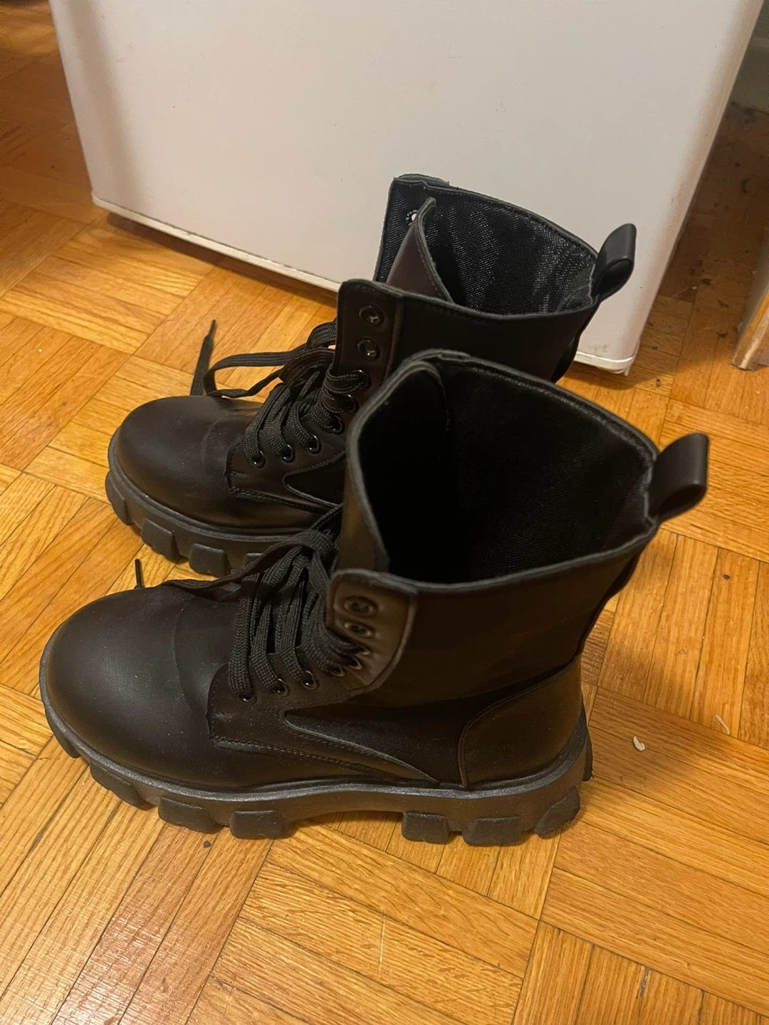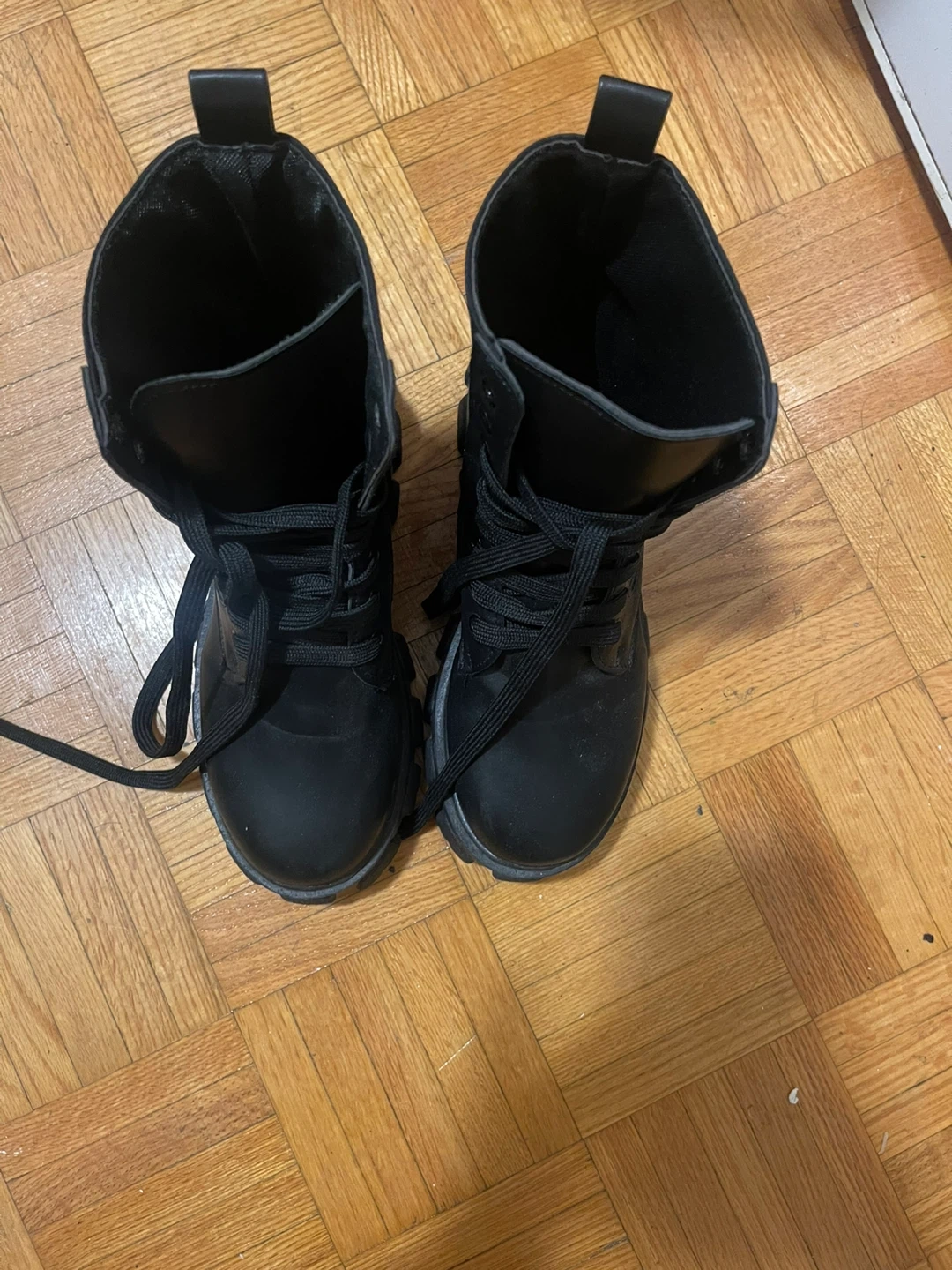 57Selling a pair of black lace-up boots. They're in great shape. Perfect for adding a bit of edge to your outfits!size 37