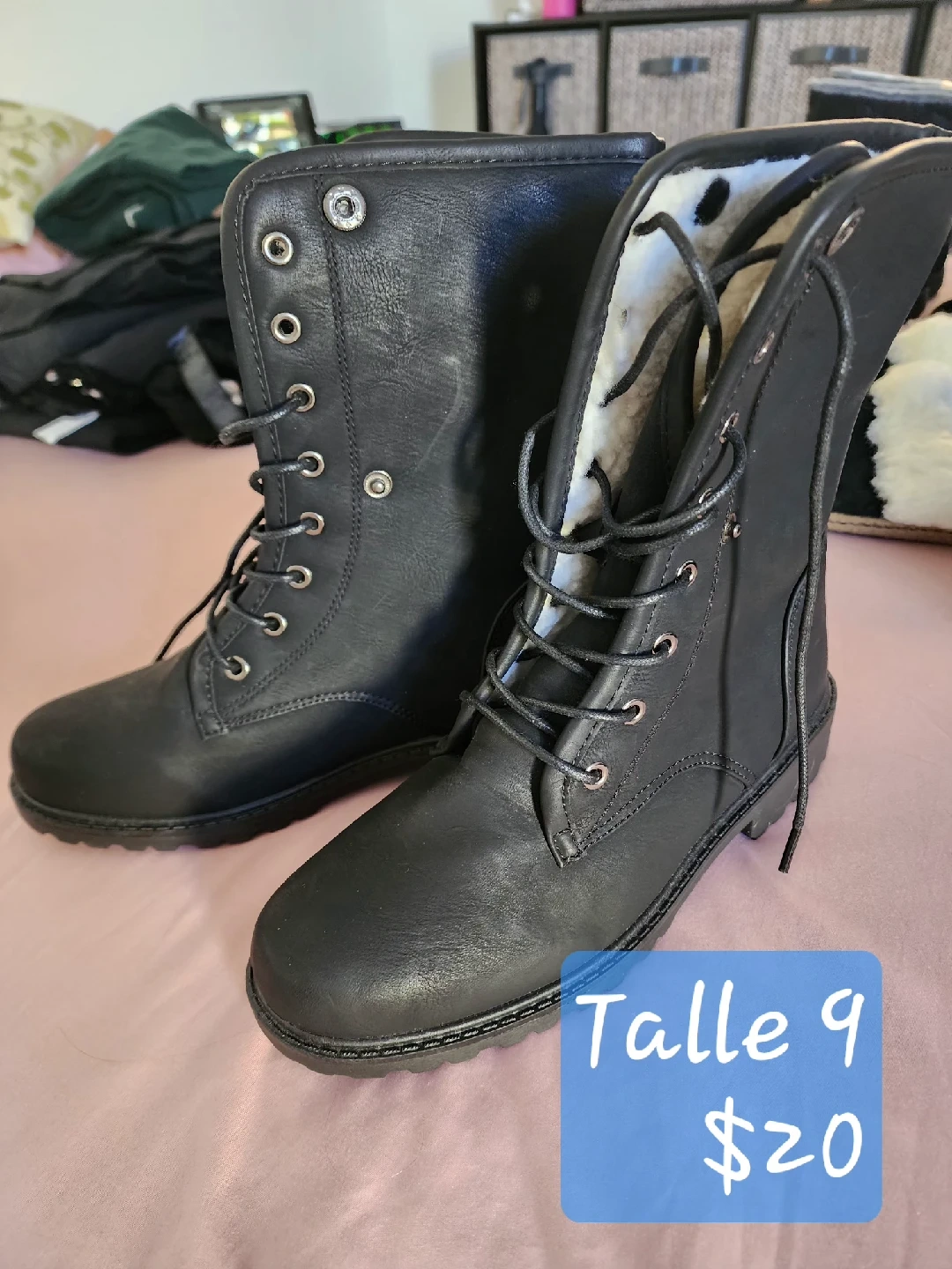 60Selling a pair of black lace-up boots in size 9. They have a stylish design and look great! Perfect for adding a bit of edge to any outfit. They are in good condition and ready for a new home