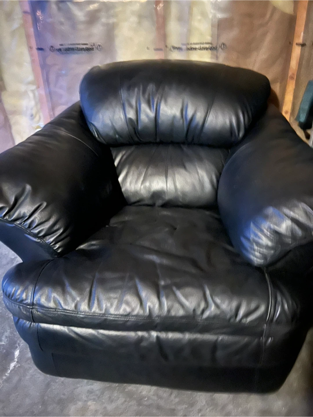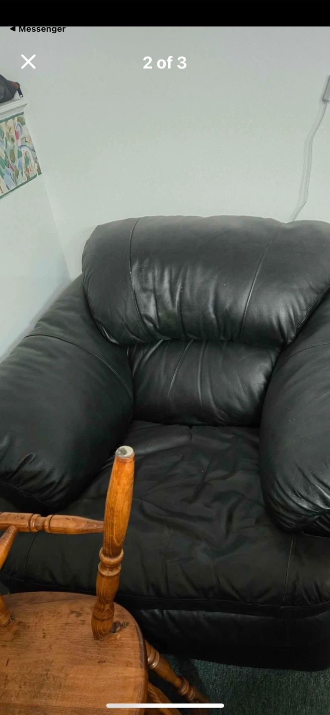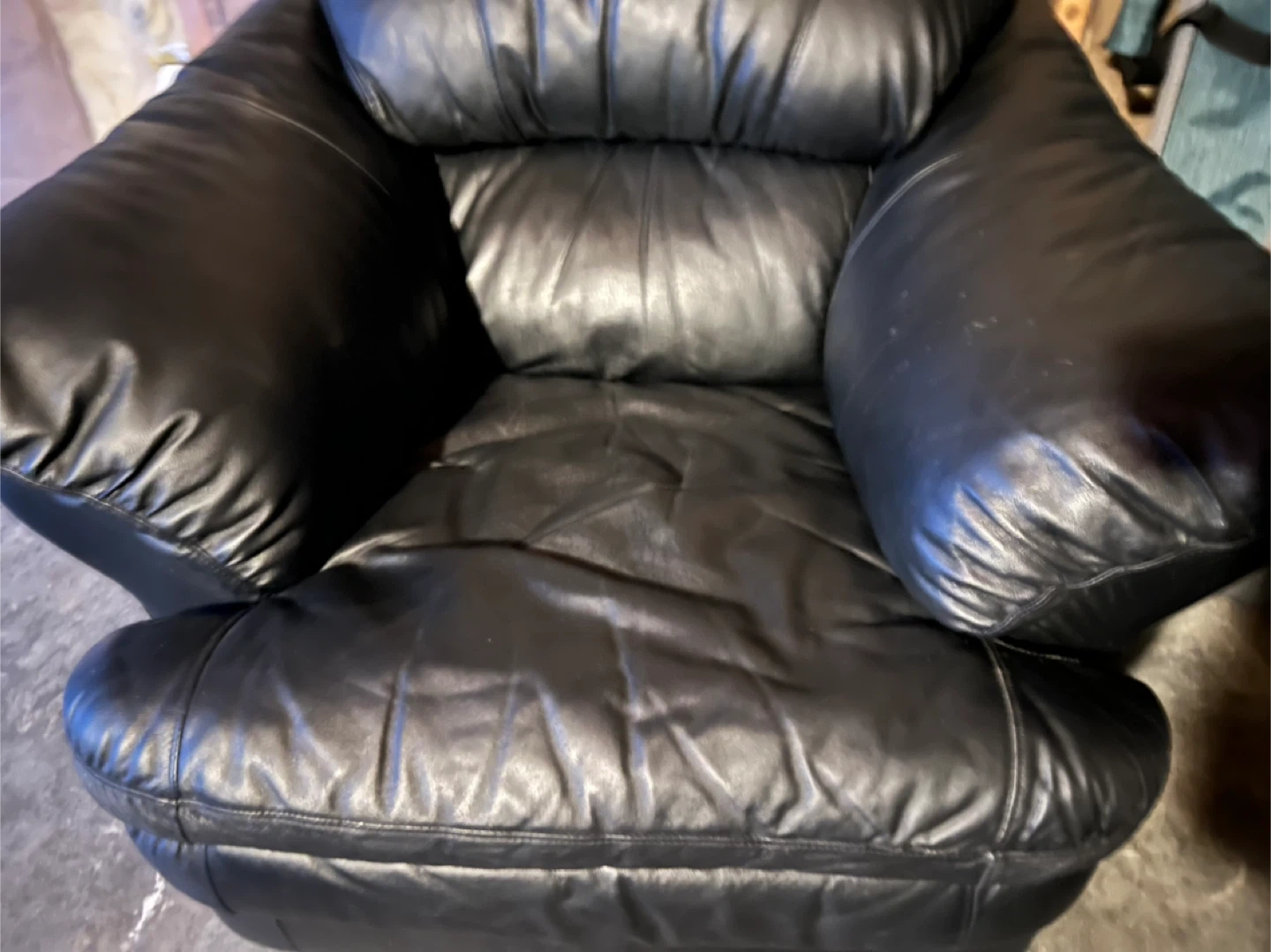 Selling a comfy black leather armchair! It's in good condition and perfect for relaxing after a long day. The leather has a nice, soft feel. It's a great addition to any living room or den! No damaged no scratches perfect condition non smoking house not pets Price included delivery
