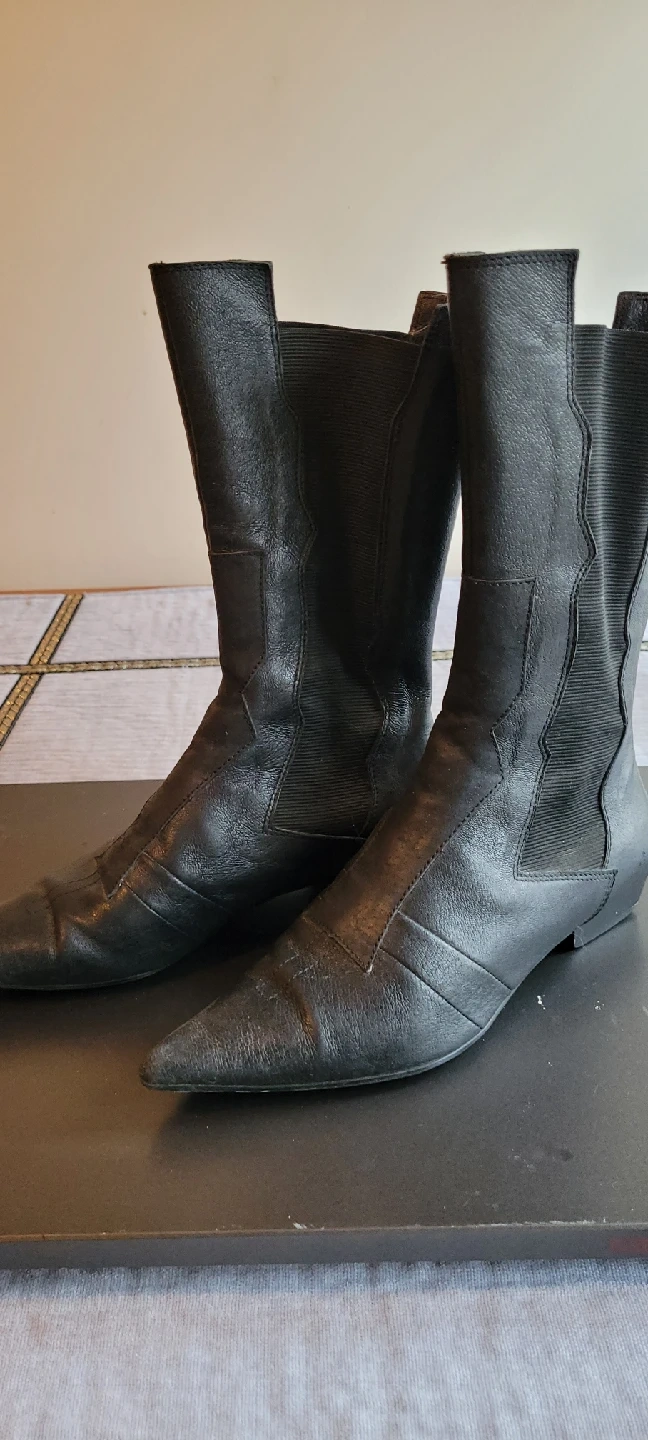 10Selling a pair of black leather boots. They have some wear, as shown in the pictures, but are still in good condition for everyday wear. They're a stylish and comfortable option for fall or winter!