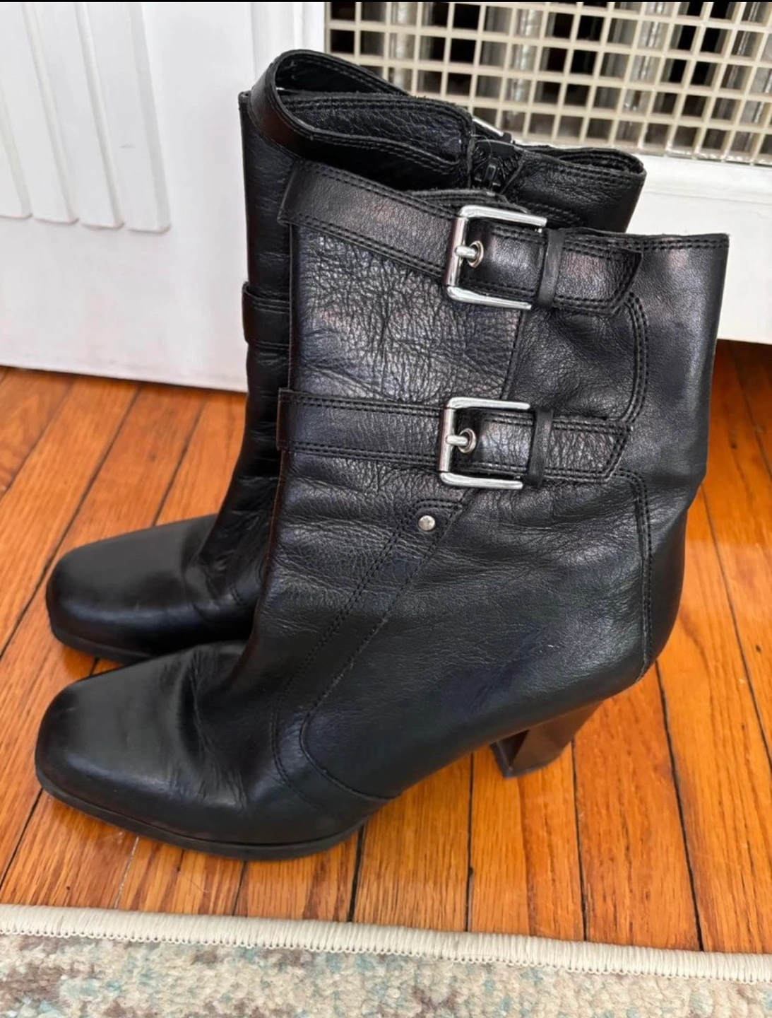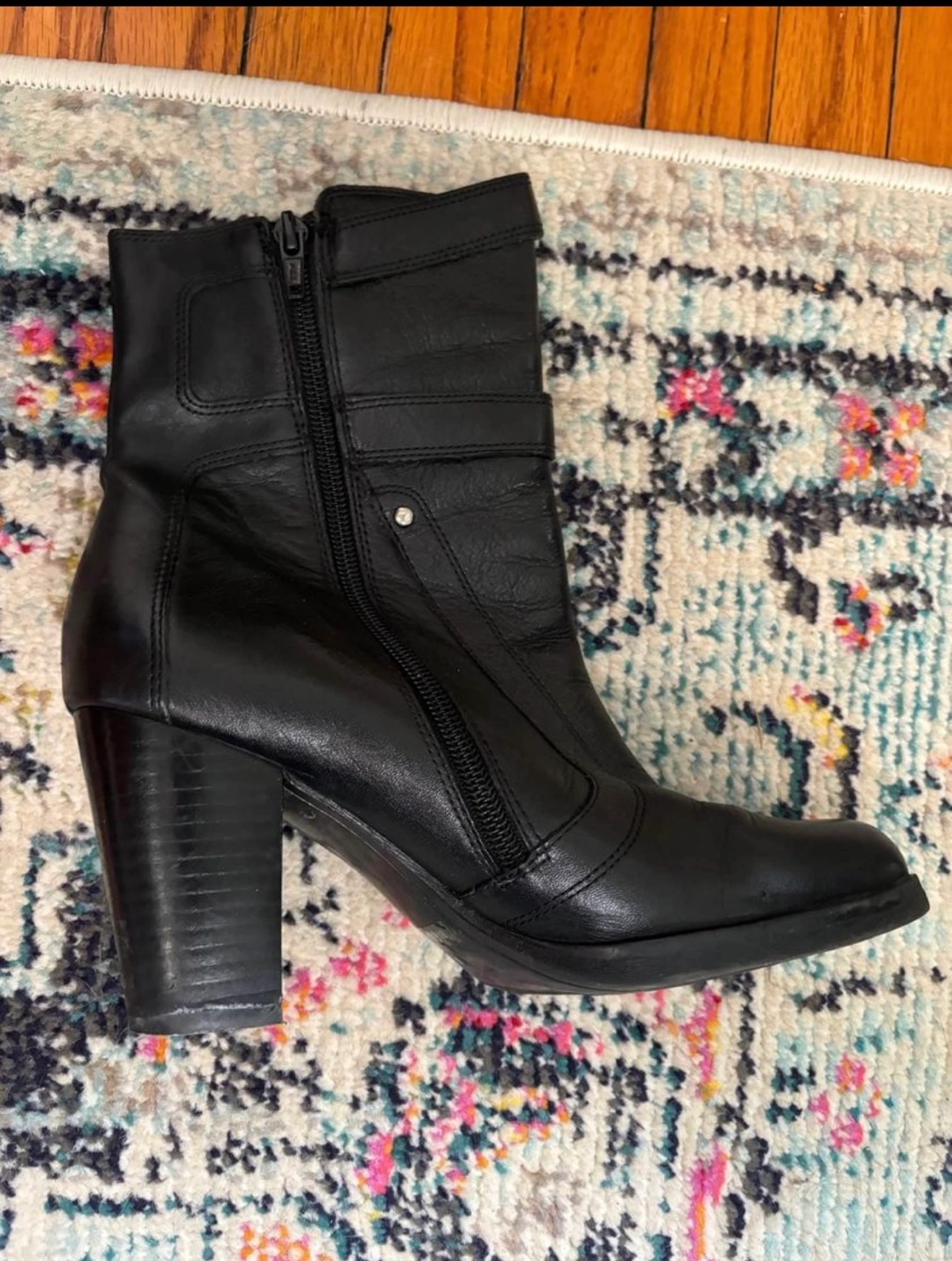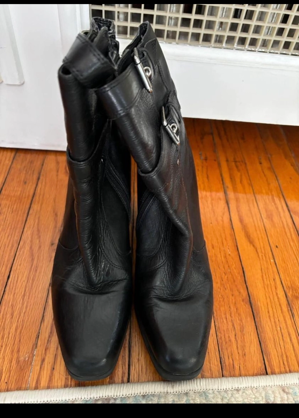 303Black leather ankle boots with buckles. Size 8. Zipper on the inside of each boot. ***Pick up at 1795 St.Clair West. Cash only. Asking Price $30.FIRM PRICE.Low ballers will not be answered my price is fixed. No Refunds / Exchange. If you see it posted on here it means it is still available, so please don't ask. Just tell me when would you like to pick up. ***First come first serve. Feel free to also check my other listings! Available Weekdays 10:30-1 then after 6:30-7:30.