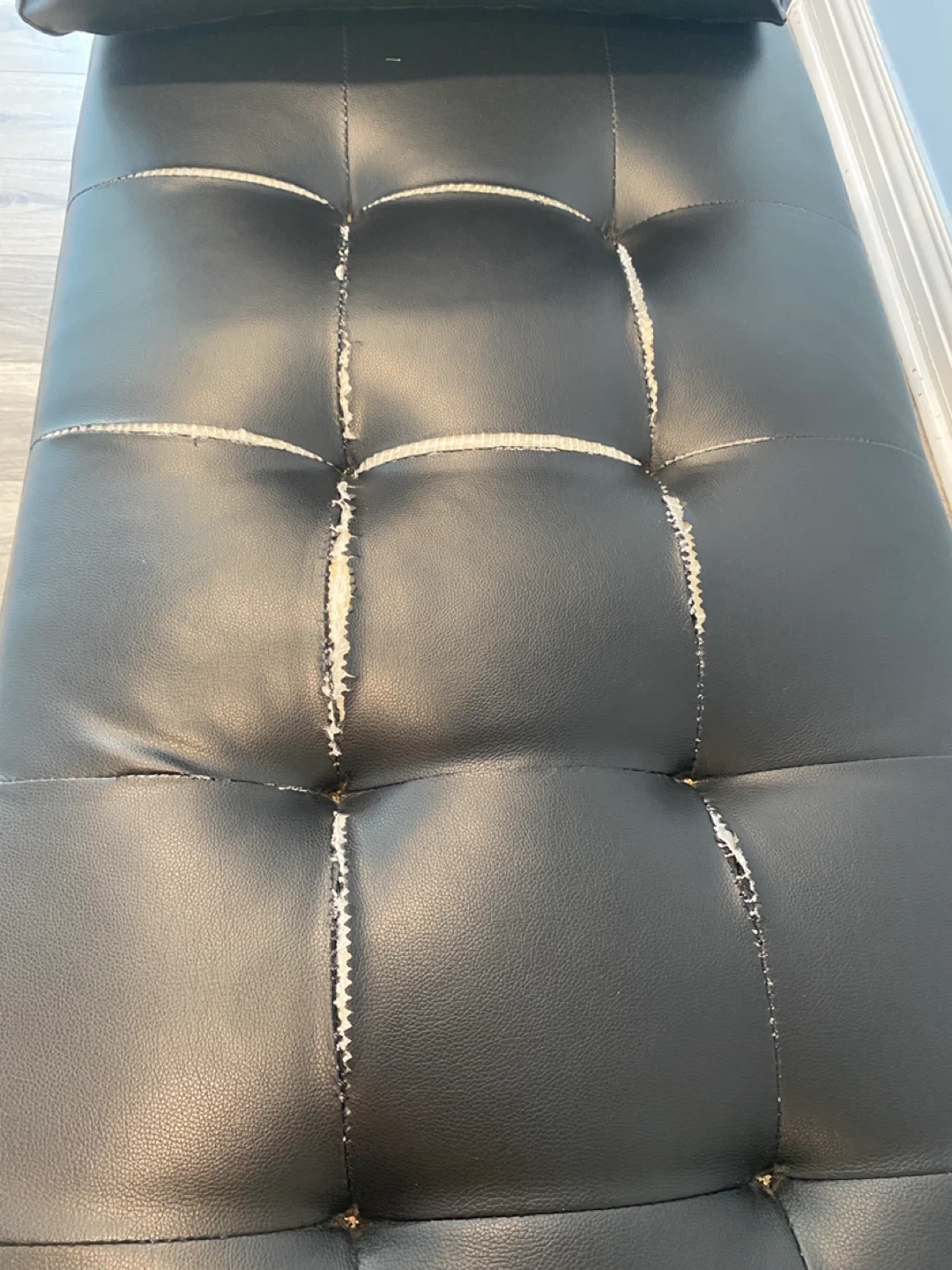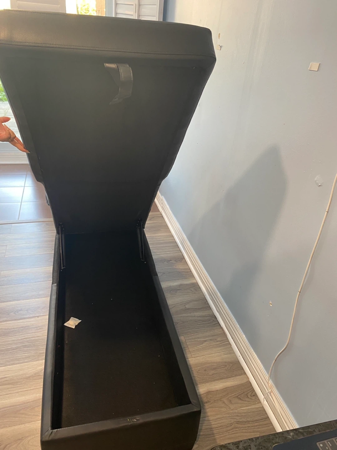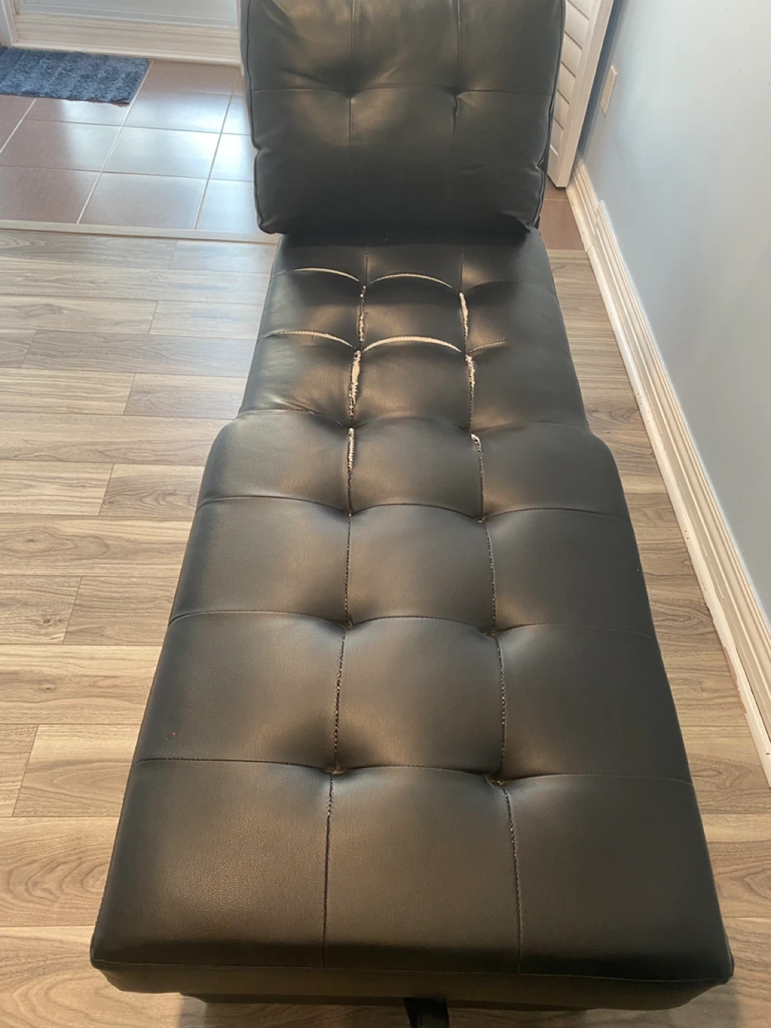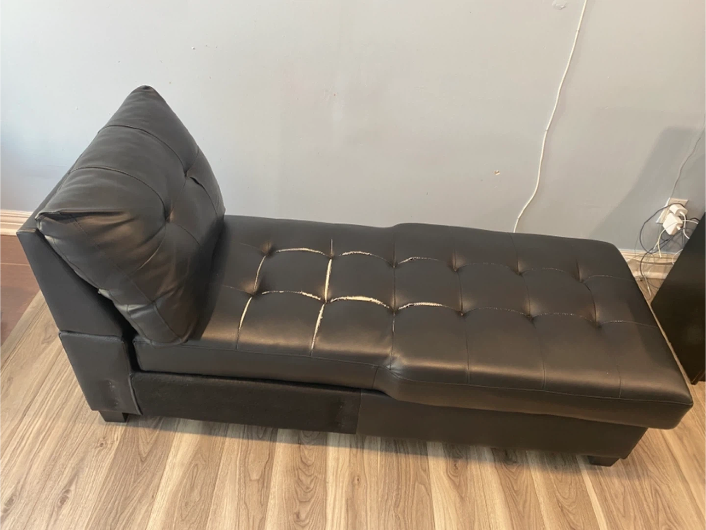 18Moving out Sale Selling a black leather chaise lounge. It has some wear and tear on the top, as pictured. It also has storage inside! Cash only please. Location-Scarborough,Toronto