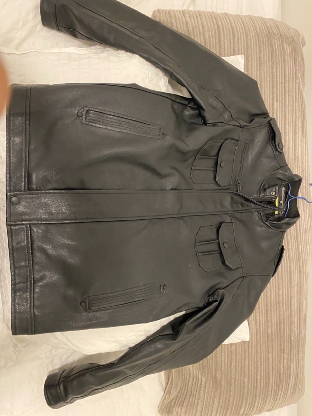 Selling a stylish black leather jacket. It's in great condition and ready